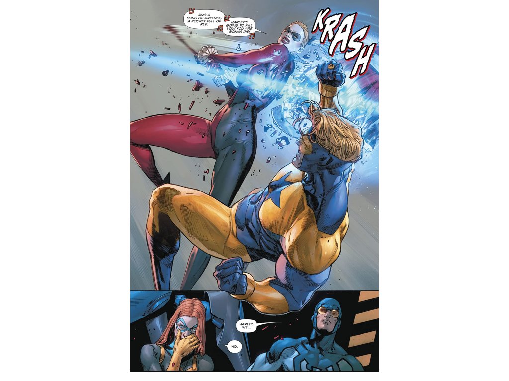 The Trinity may have uncovered the true killer responsible for the deaths at Sanctuary, but the artificial intelligence that ran the institution is the one thing standing between them and the culprit. Now Batman, Superman and Wonder Woman must face off with their own creation-and face the consequences for what they created. Also, as the truth is uncovered, Booster and Harley go from being enemies to allies.