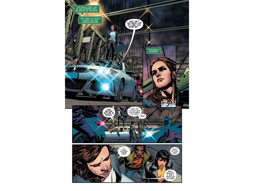 Jen Walters used to fight for justice in the courtroom as a lawyer and outside of it as the super hero known as She-Hulk. But after the events of Civil War, Jen's Hulk persona has changed, seemingly putting the super hero part of her life out of reach…But a new drug has hit the streets, turning people into monsters, and Jen can't help but be pulled into the craziness of it all…Is She-Hulk back? Or is her new Hulk a new breed of hero?