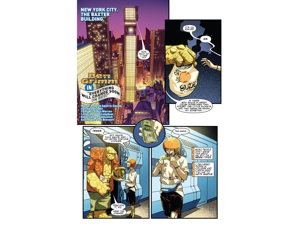 The next spectacular chapter in I Am An Avenger comes at you with fan-favorite writer Roberto Sacasa leading the charge: By day, Ben Grimm is a member of the Fantastic Four; by night, he is one of Luke Cage's New Avengers. Except…it's never that cut-and-dry, is it? Where do your allegiances lie when both teams need you and one team is your family? Avengers across New York engage in a long-forgotten battle- one that Firestar and Justice can end if they're willing to pay the price! Ms. Marvel and Spider-Woman recall their days of past glory, while looking forward to the future, (and beating the snot out of punks.) And Tony Stark learns not to mess with teenaged angst, especially when it's "Stature"-esque in scale!