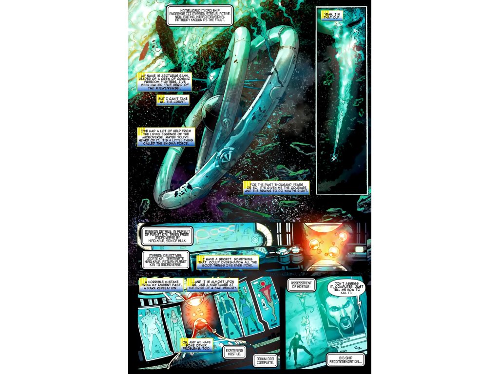 Commander Rann and his ENIGMA FORCE face their first mission as the protectors of the new MICROVERSE - but it might be over before it begins when they are forced to rely on the help of a horrifying enemy! But to stop HIRO-KALA, the sinister SON OF HULK, and the rampaging, world-shattering plans he has for Jarella's World, the Force will go to any length! With old friends Marionette and Bug alongside some new faces, this Enigma is a force to be reckoned with!