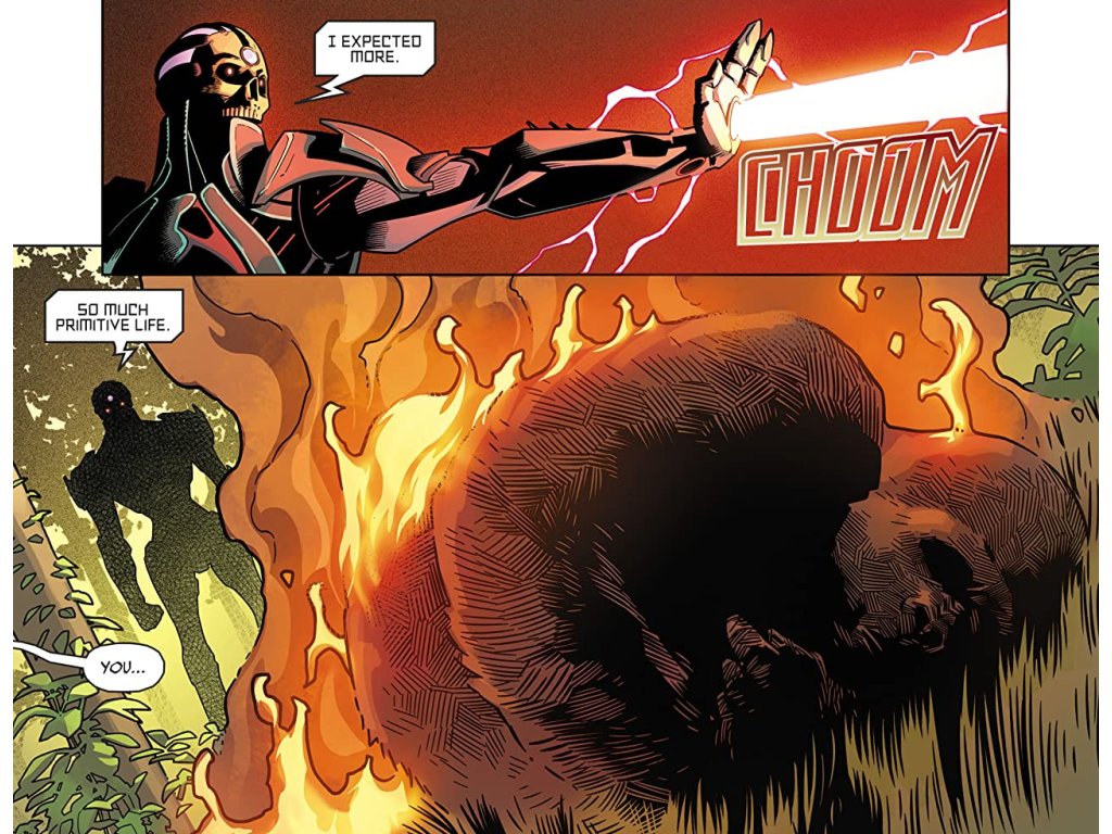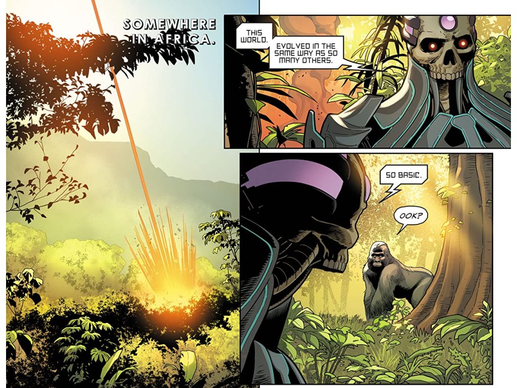 Batman is convinced by his closest allies to do the unthinkable: meet with Ra’s al Ghul and try to negotiate a settlement through which they can save the world together. Meanwhile, Grodd encounters an alien visitor who may render meaningless any agreement between Batman and Ra’s.