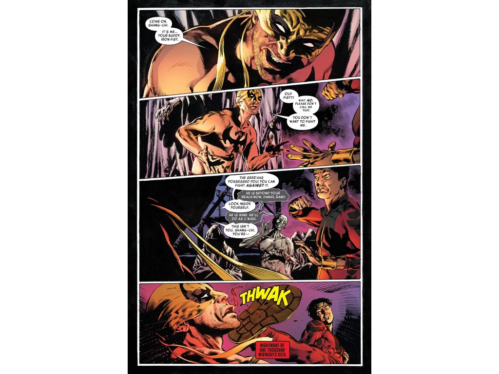THE LIVING WEAPON…UNDER ANOTHER'S CONTROL?! IRON FIST'S action-packed team-up with MASTER OF KUNG FU, SHANG-CHI, continues! He's gonna need all the help he can get to fight a CANADIAN MURDER CULT called the Lineage, and the villainous man who controls it! Will Danny survive long enough to learn who sent the Lineage after him?