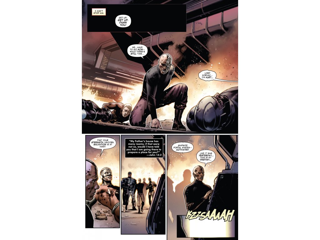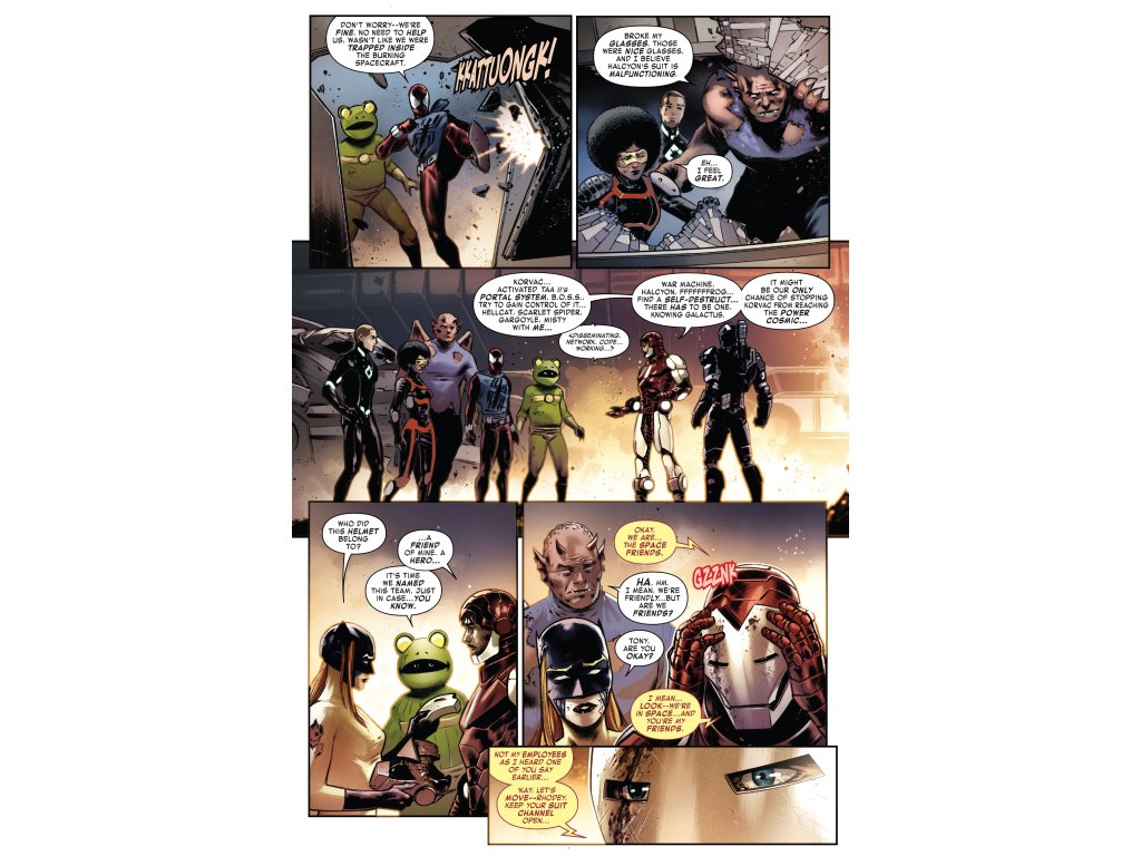 The epic showdown between Iron Man and his allies and Korvac and his cohort continues aboard Galactus’ worldship! Reinforcements have finally arrived, and Tony Stark now stands a better chance of stopping Korvac from accessing the Power Cosmic and becoming a power-crazed god all over again! Can Tony—and War Machine, Hellcat, Scarlet Spider, Frog-Man, Gargoyle, Misty Knight and Halcyon—end this fight once and for all? Or are things about to get a whole lot worse? And if they do, will Tony be forced to make a choice that alters the course of his very human existence forever?