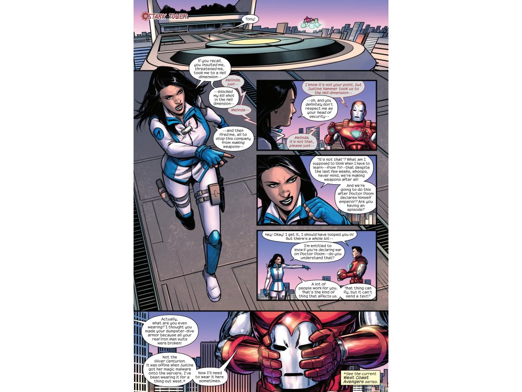 THE IRON SELLOUT! After witnessing firsthand the devastation of war, Tony Stark famously divested his company from the weapons trade. Then Orchis and Feilong came along, and a furious Iron Man watched them dismantle his legacy. Now Stark Unlimited is going back to its roots as Tony publicly announces a FULL-SCALE RETURN TO WEAPONS MANUFACTURING! What?! Why is Iron Man meeting with rebels outside Latveria? Why is the Winter Guard after him (this time)? Why is Doctor Doom sending angry emissaries to Stark's door? WHAT IN ALL HELL IS TONY STARK DOING?!