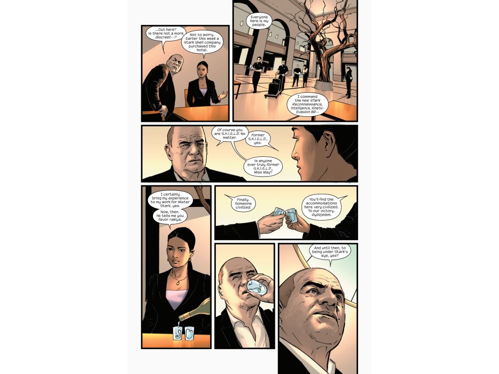BY ANY MEANS OF PRODUCTION NECESSARY! Back in the weapons business, Iron Man will cross line after line to stop Emperor Doom — but the Black Widow is just as determined to save her friend from himself! Can Tony thwart the super-spy supreme before she throws a wrench into his machine? It’s worker versus CEO as "The Insurgent Iron Man" escalates!
