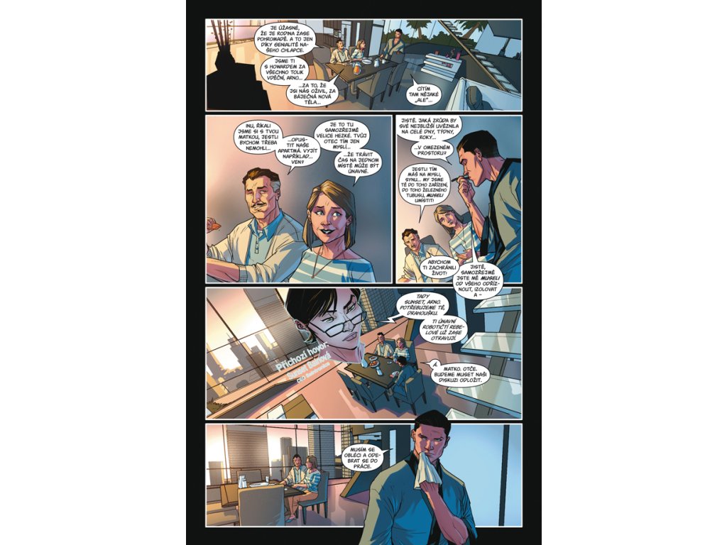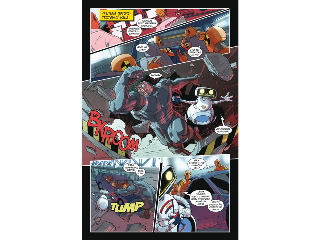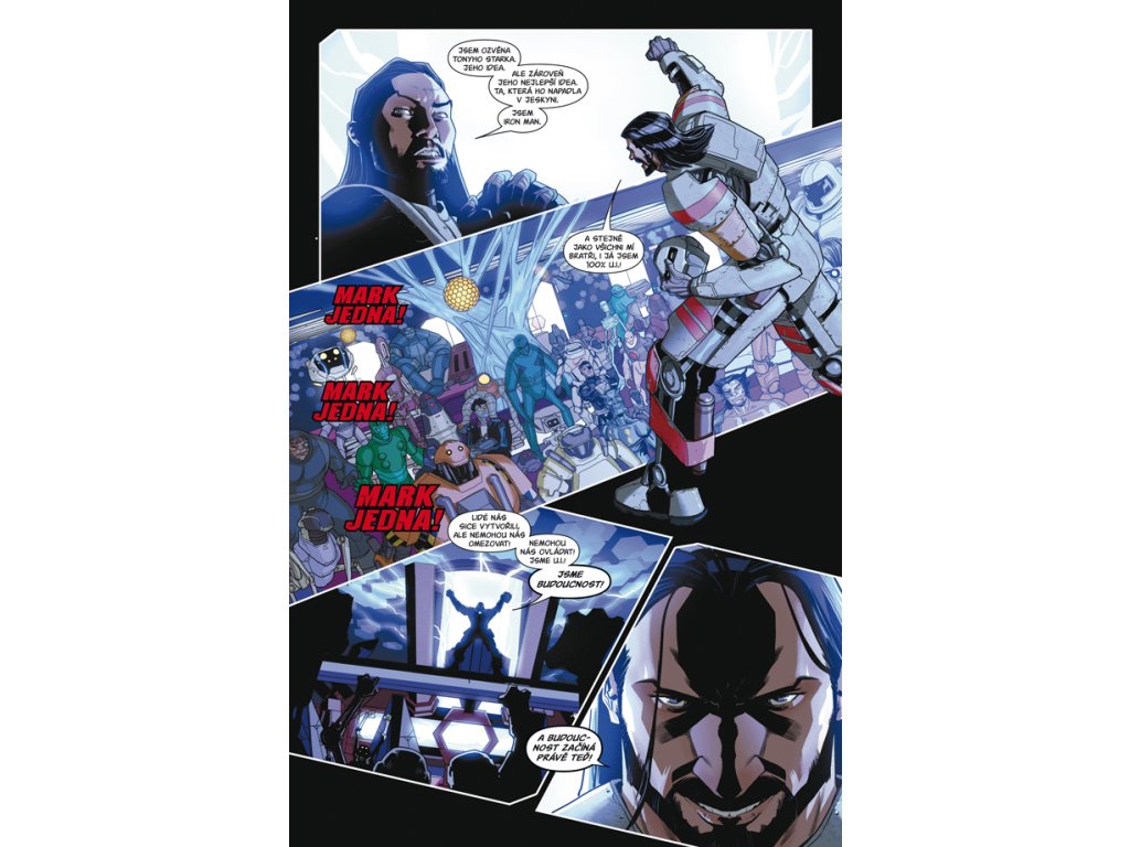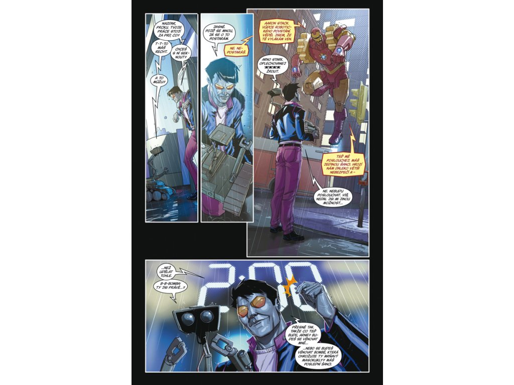 Všechno je vyřešeno. Robotická rebelie skončila. Lidstvo je v bezpečí. Za to všechno můžete poděkovat Arnovi Starkovi, Iron Manovi roku 2020. No necítíte se skvěle? Machine Man nezabije ani vás, ani ty, které milujete. 1010101111001100110000. Těch čísel si nevšímejte. To byl jen překlep. Omlouváme se za všechny chyby, výpadky… nebo nečekané problémy, které se mohou vyskytnout ve vámi vlastněných zařízeních firmy Baintronics. Softwarová aktualizace už je na cestě. Spraví úplně všechno. Včetně lidstva samotného! Dan Slott a Pete Woods přicházejí s příběhem, jaký tu ještě nebyl, s Iron Manem, jaký tu ještě nebyl! Chvíle, na kterou se Arno Stark připravoval, téměř nastala: konec veškerého života tak, jak ho známe! Ale dokáže jeho egomaniacký plán někdo zastavit? Kde je původní Iron Man?