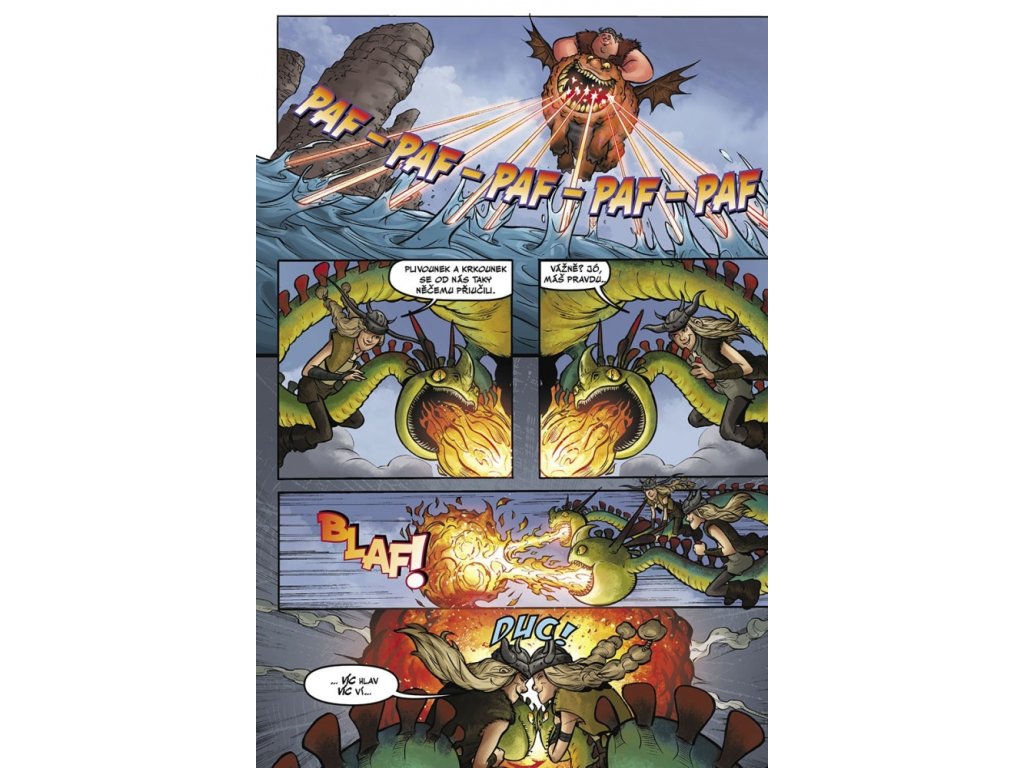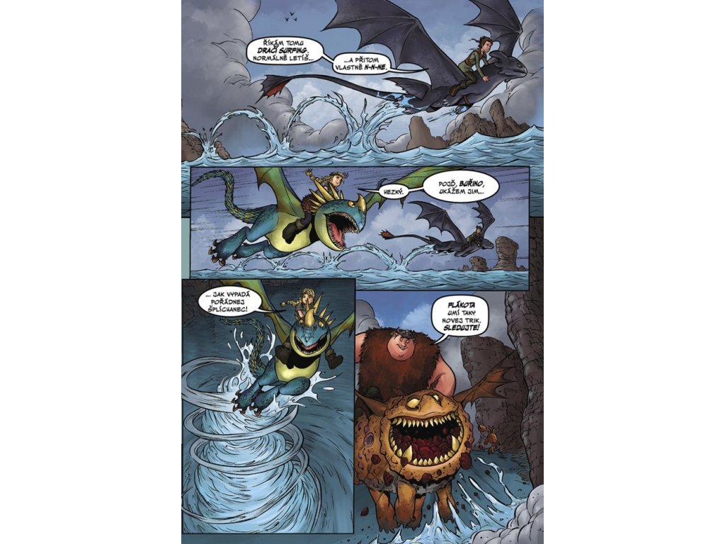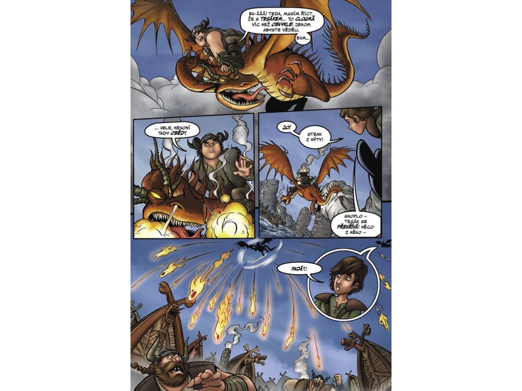 Zcela nová komiksová dobrodružství o Škyťákovi, Bezzubkovi a jejich přátelích! Snoplivcův drak Tesák líná. Žhavé šupiny, které z něj padají, způsobují po celém Blpu požáry. Když nešťastný Tesák z ostrova odletí a nevrací se, kamarádi se za ním vydávají na záchrannou akci. Na Tesáka má však spadeno také Alvin Úhoř… Kdo se k Tesákovi dostane první – Škyťák s přáteli, nebo Alvin?