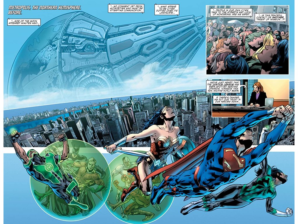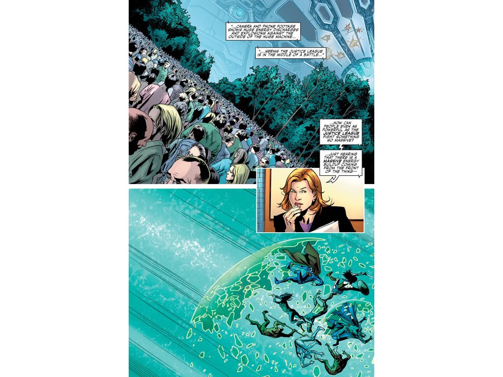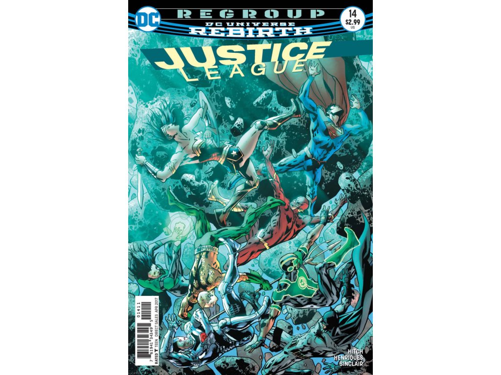 “REGROUP”! Broken, battered and pinned down by a new alien threat, the Justice League is forced to confront long-simmering tensions between teammates before they can save the world. Grievances are aired and secrets are revealed in this special issue written and drawn by Bryan Hitch.