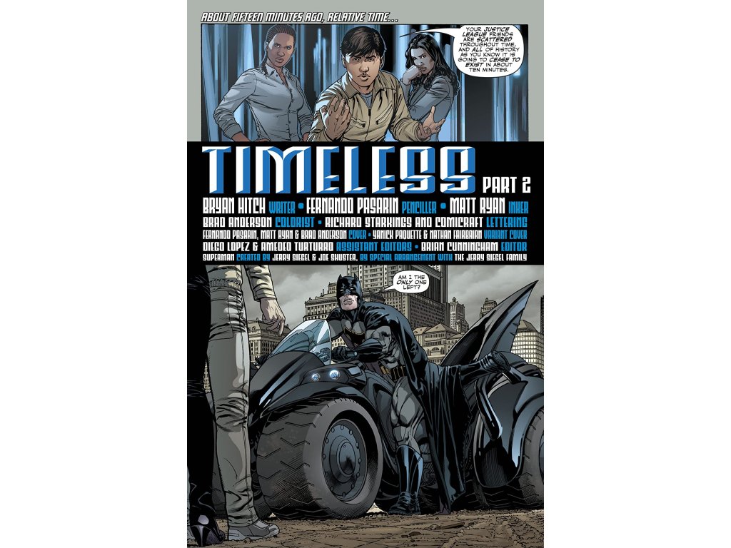 “TIMELESS” part two! Scattered across time, the individual members of the Justice League must fight their way back to the present from the ancient past and distant future to stop the Timeless from erasing the Earth’s greatest heroes from history itself.