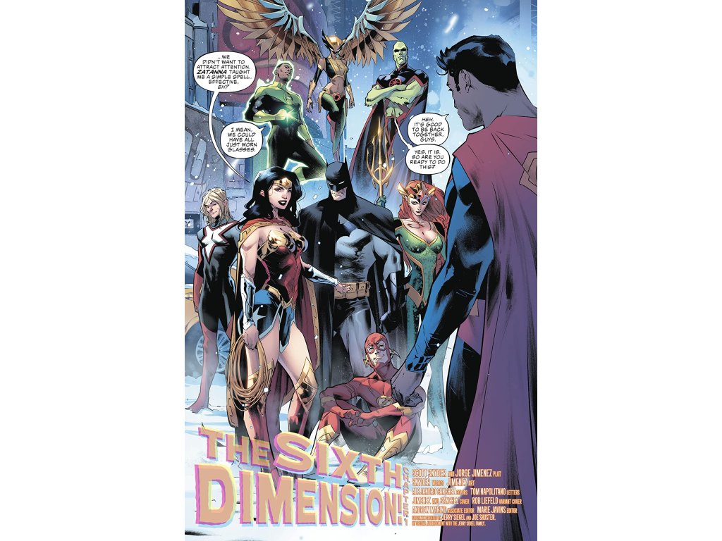 “The Sixth Dimension” part one! At last, the Justice League has the map to the Sixth Dimension in hand—and with it, they have the key to saving the Multiverse from utter destruction! But things aren’t as simple as they seem, because they still need to get to the doorway—and to do that, they’ll have to go through the only being in all of existence who can get them there: Mr. Mxyzptlk!