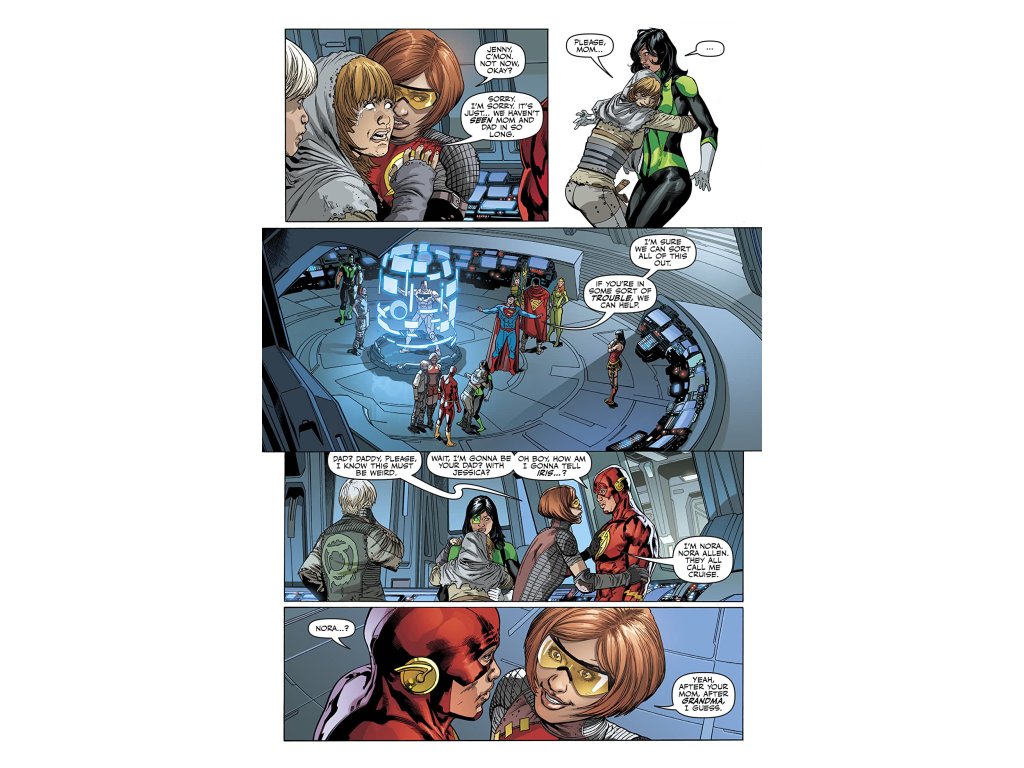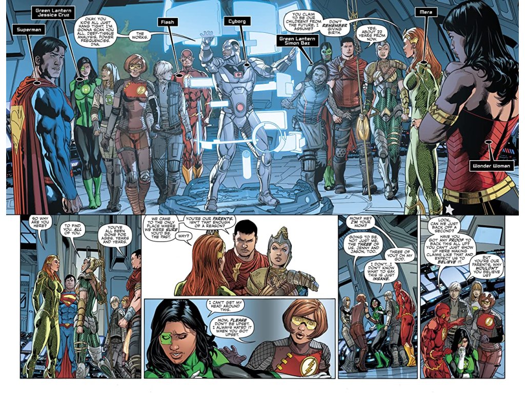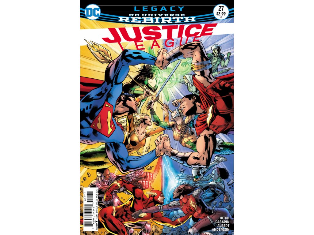 “LEGACY” part two! A massive metahuman war threatens to leave the future ripe for conquest by the despot known only as Sovereign. So warn the children of the Justice League, who have come back in time to save the world. But the term “blood feud” takes on new meaning when the younger heroes declare that for the crisis to be averted, one of the Justice League must die!