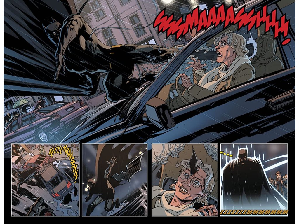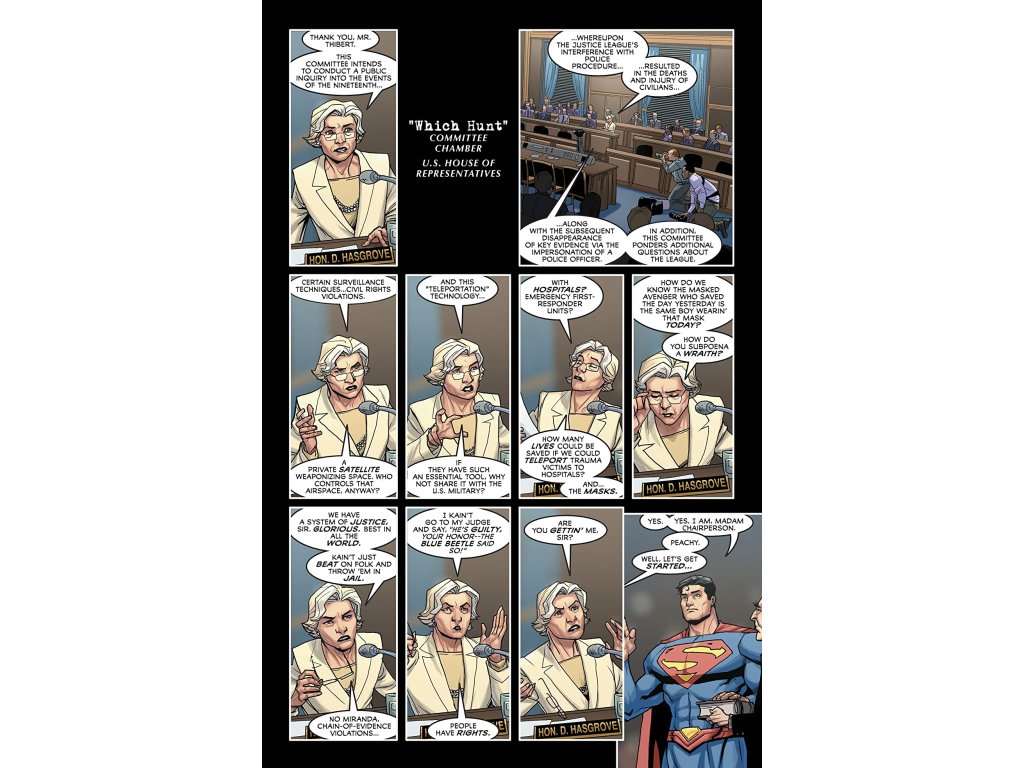 “JUSTICE LOST” part three! Footage of a major Justice League failure ends up on an extremist website, going viral across social media and prompting a Congressional investigation of the team. As public debate explodes over America’s trust in the Justice League, the team faces a crisis of confidence in Batman and his methods, which ultimately highlights fractures within the team over civil rights and methodology.