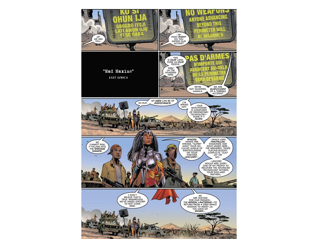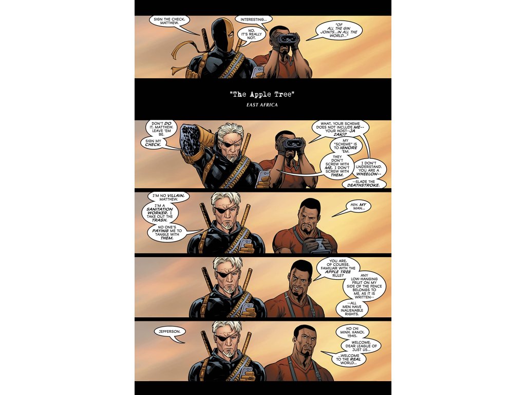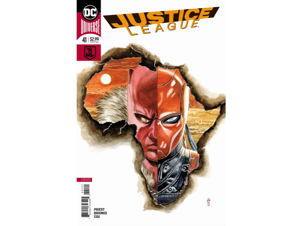 “JUSTICE LOST” part two! What does justice mean in a lawless world? This is the question the team must struggle with when the League finds itself trapped between warring factions, helpless refugees and mercenaries with advanced weaponry, all manipulated by Deathstroke’s frenemy the Red Lion. Meanwhile, Batman forces a showdown between himself and the League’s biggest fan.