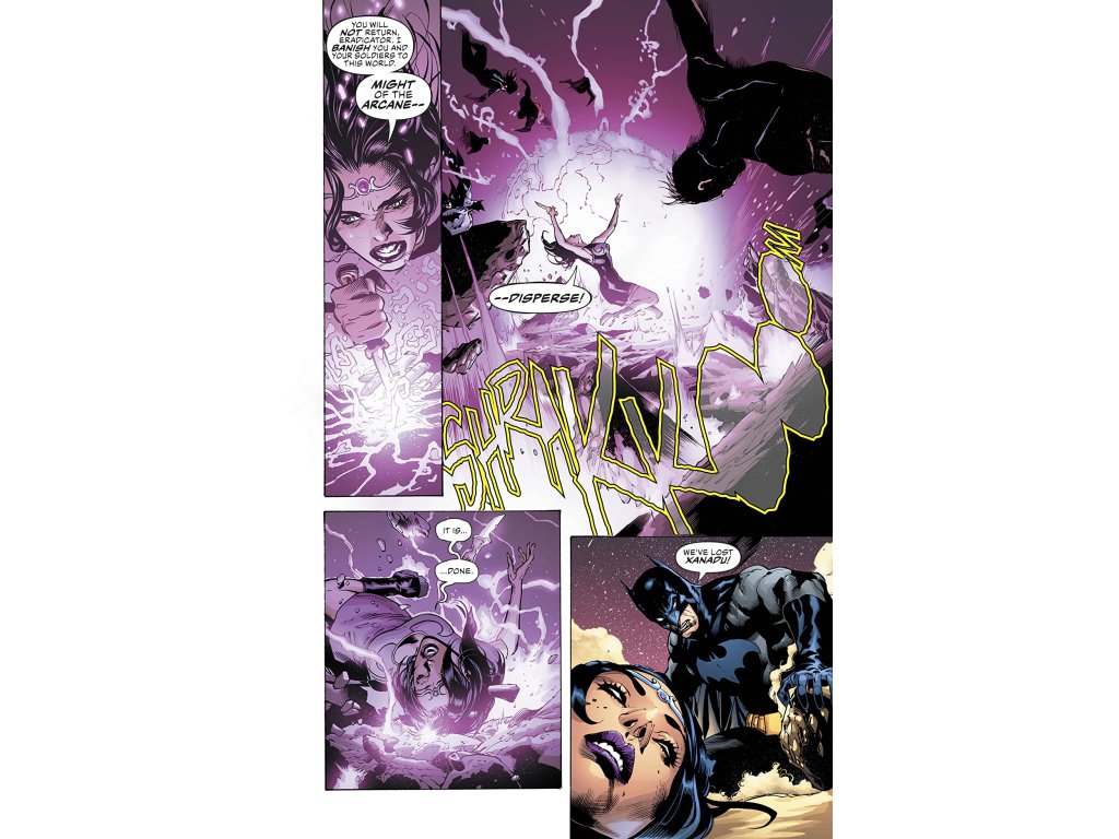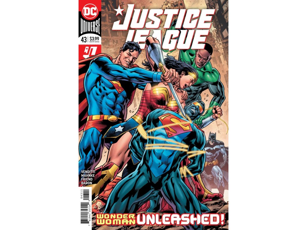 All secrets revealed! Caught in the Justice League’s trap, the Eradicator reveals the truth hidden in his circuits. And as Superman confronts his past defeat, it’s up to Wonder Woman to make a decision that will divide the team. The no-holds-barred war between the League and a murder machine with Superman’s face concludes!
