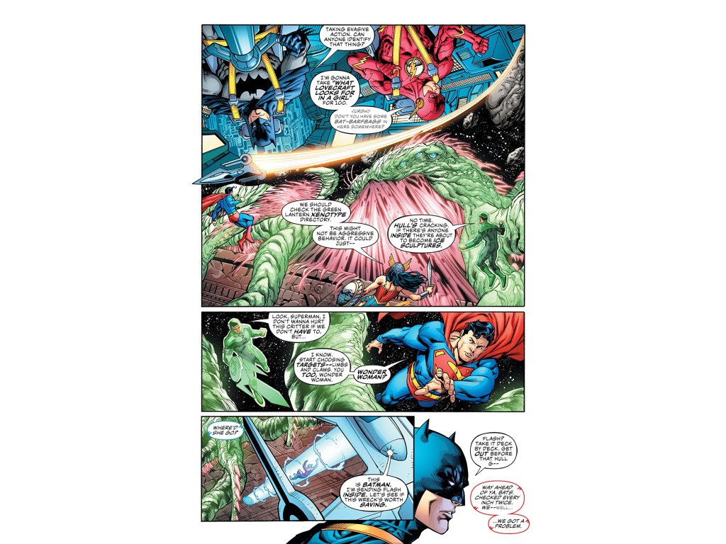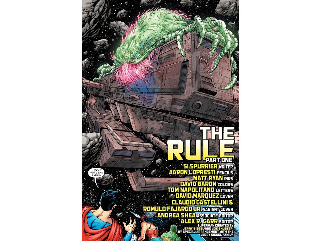 As writer Simon Spurrier jumps on board for the start of the three-part tale “The Rule of War,” it’s close encounters…of a Justice League kind! After answering a distress signal from distant space, Batman, Superman, Wonder Woman, the Flash, and Green Lantern discover an abandoned cargo ship full of young aliens! When the League attempts to return the children to their home planet, they are met with awe, terror, and war! Thus begins a three-part storyline that will take the League to a previously unknown planet, with an all-new species, a dangerous mystery, and a new, otherworldly villain.