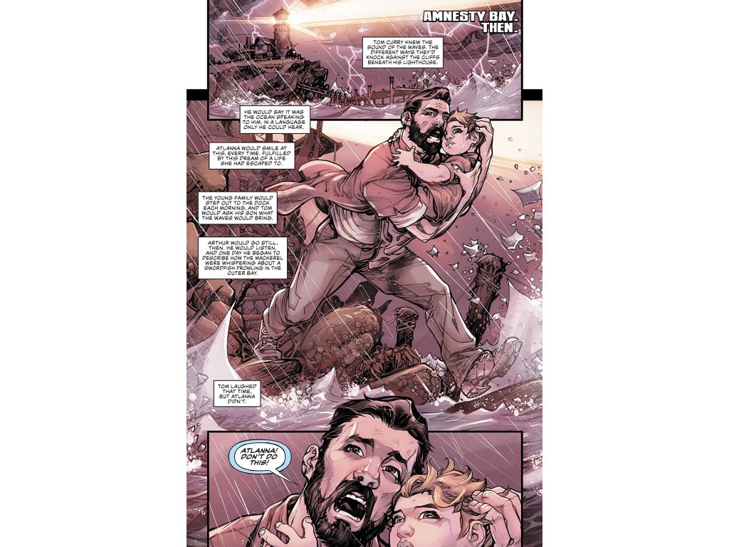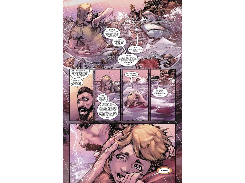 “Drowned Earth” part one! The Ocean Lords—ancient sea gods with a grudge against Aquaman and Wonder Woman—invade the Earth with an alien army and flood the globe. As Batman, Superman and the Flash race to stop the waters from rising and turning everyone into aquatic monsters, Mera seeks the advice of an old enemy, and Arthur must face down Black Manta…or lose his connection to the ocean forever!