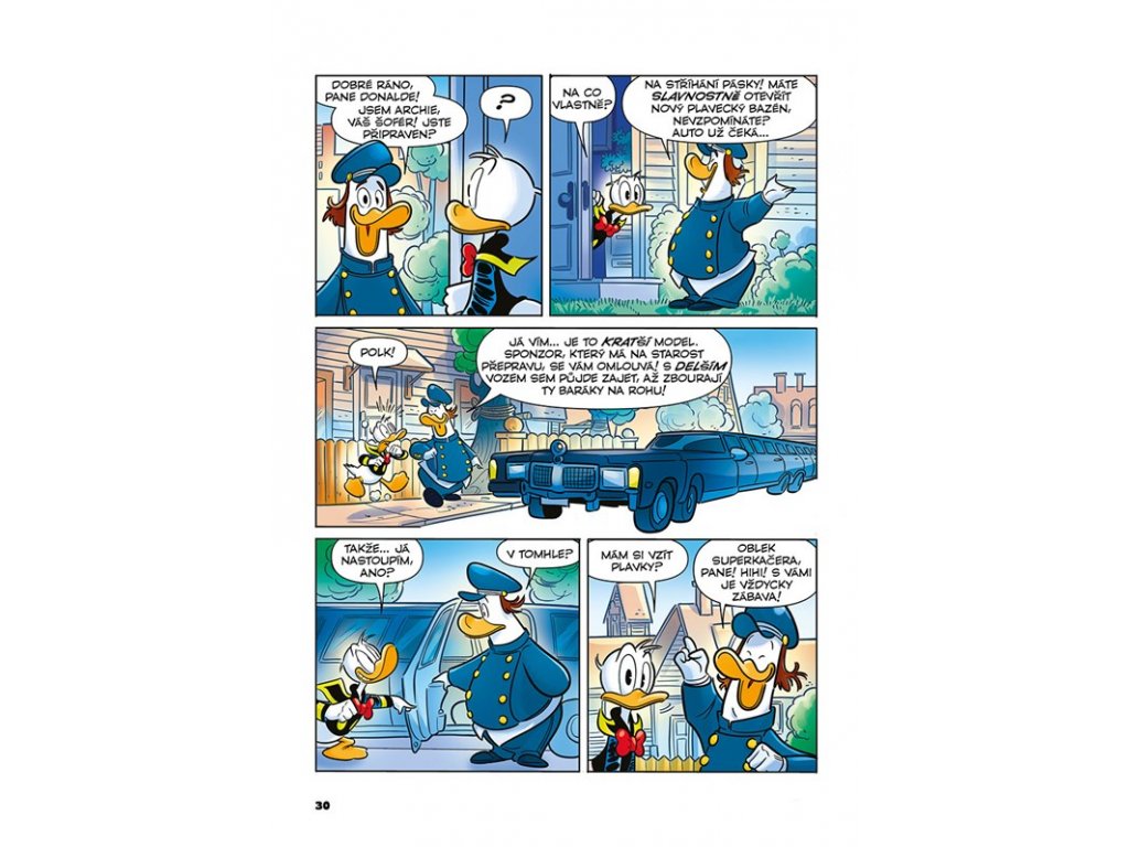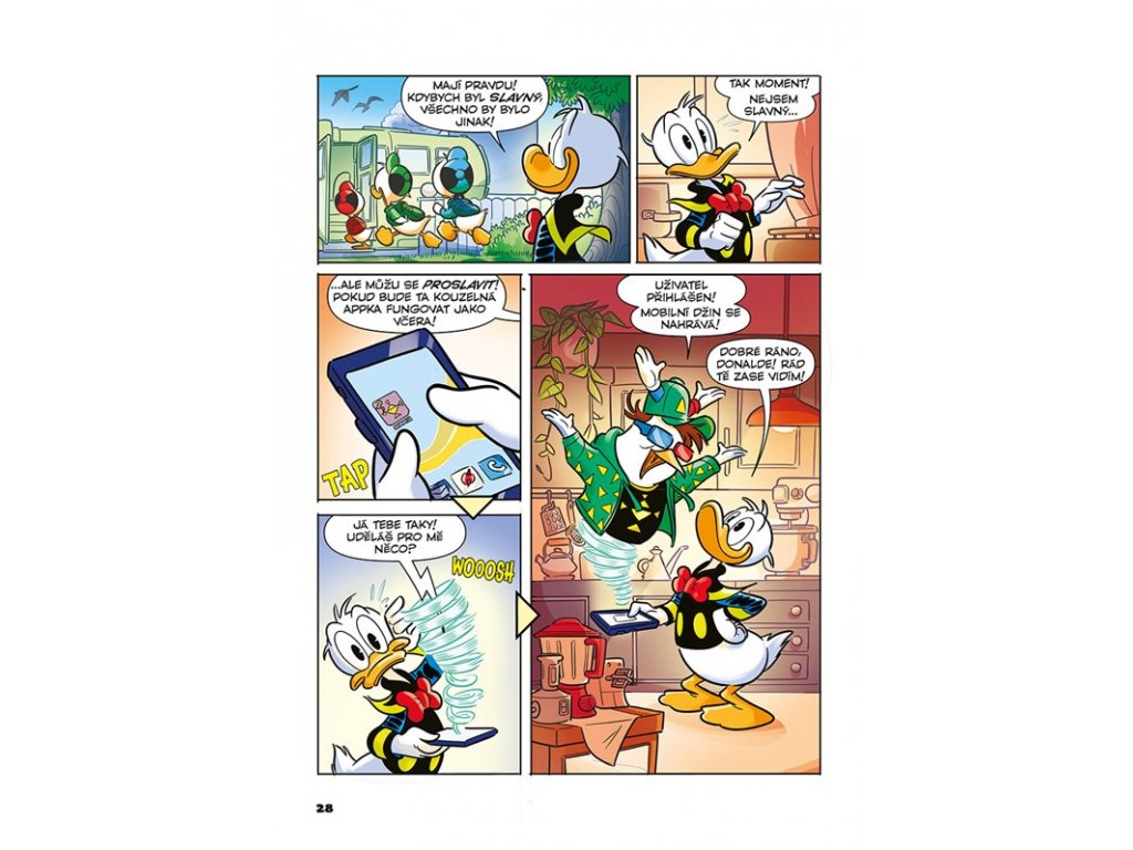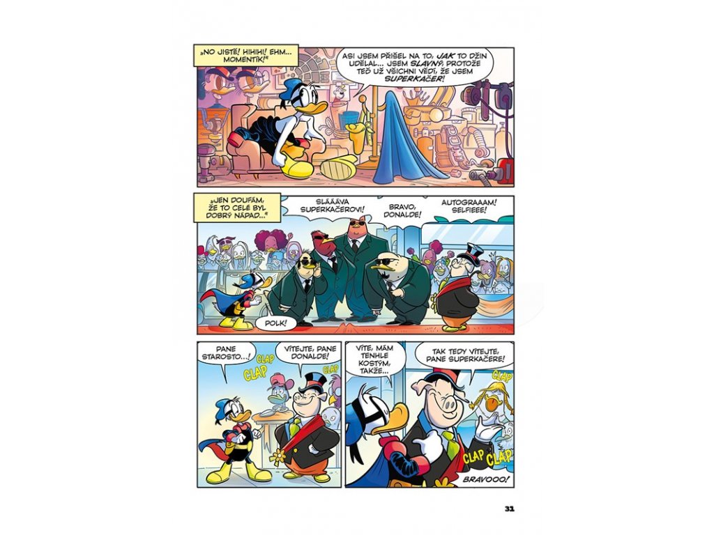 Kačer Donald se za vámi řítí se svou nezměrnou energií a nadšením! U příležitosti 90. výročí od chvíle, kdy se poprvé objevil v animovaném filmu, vznikla úplně nová dávka komiksových příběhů, které pobaví i překvapí všechny jeho fanoušky. Vždyť přece znáte Donalda a jeho synovce – s nimi nezůstane kámen na kameni. Dobrá nálada zaručena!