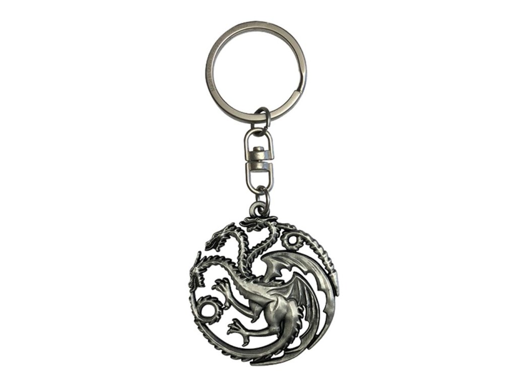 Kovová 3D klíčenka se znakem Targaryenů z populární série Game of Thrones.