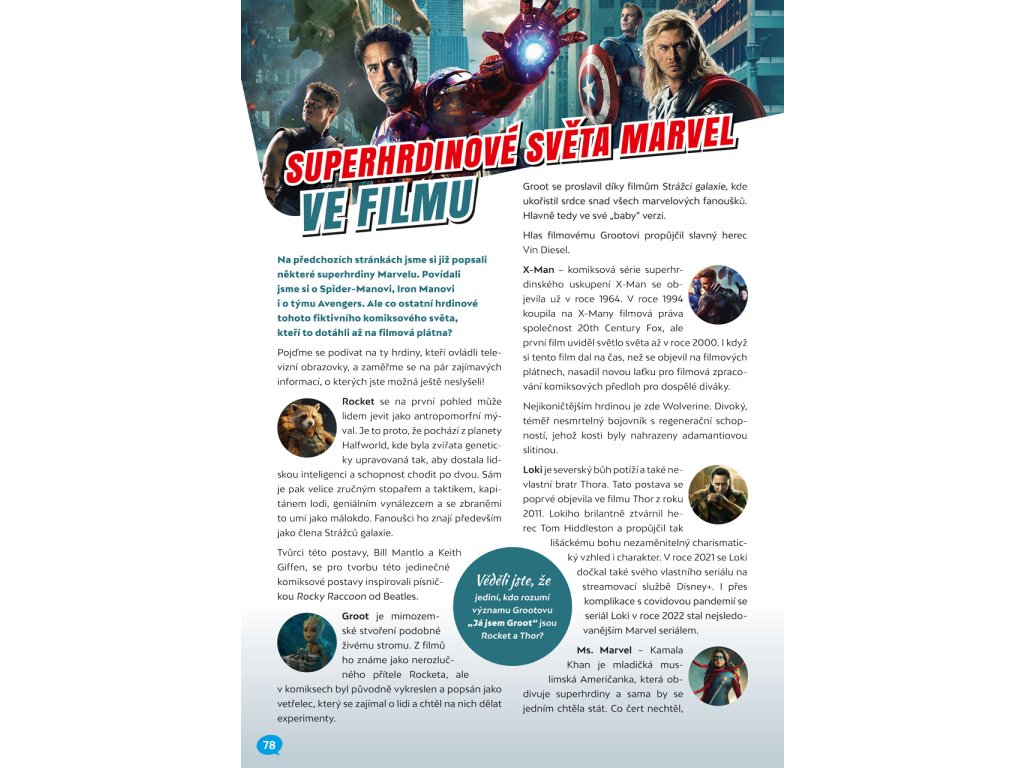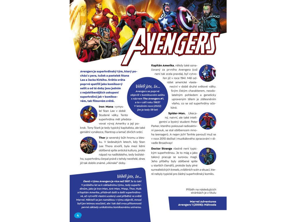 Můžete se tak těšit na dobrodružství s Avengers, kapitolu s Iron Manem a dokonce dva příběhy s oblíbeným pavoučákem Spider-Manem! Jako bonus je tu také článek o Stanu Leem, filmových superhrdinech Marvelu a nebo text o sedmi místech, kam se vypravit za komiksem!