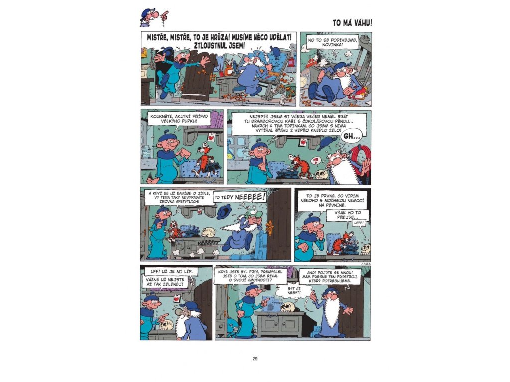 Francouzští fanoušci komiksu považují album s číslem devět za jedno z nejzdařilejších. Teď se dostává pod titulem Génius nadprůměrnosti do rukou i našim čtenářům. Leonardo opět hýří nápady a jeho sluha je opět neúspěšně realizuje. Raritou tohoto alba je lebka zvaný Yorrick, která v tomto albu poprvé promluví a účastní se bezděčně veškerého dění v Leonardově laboratoři.