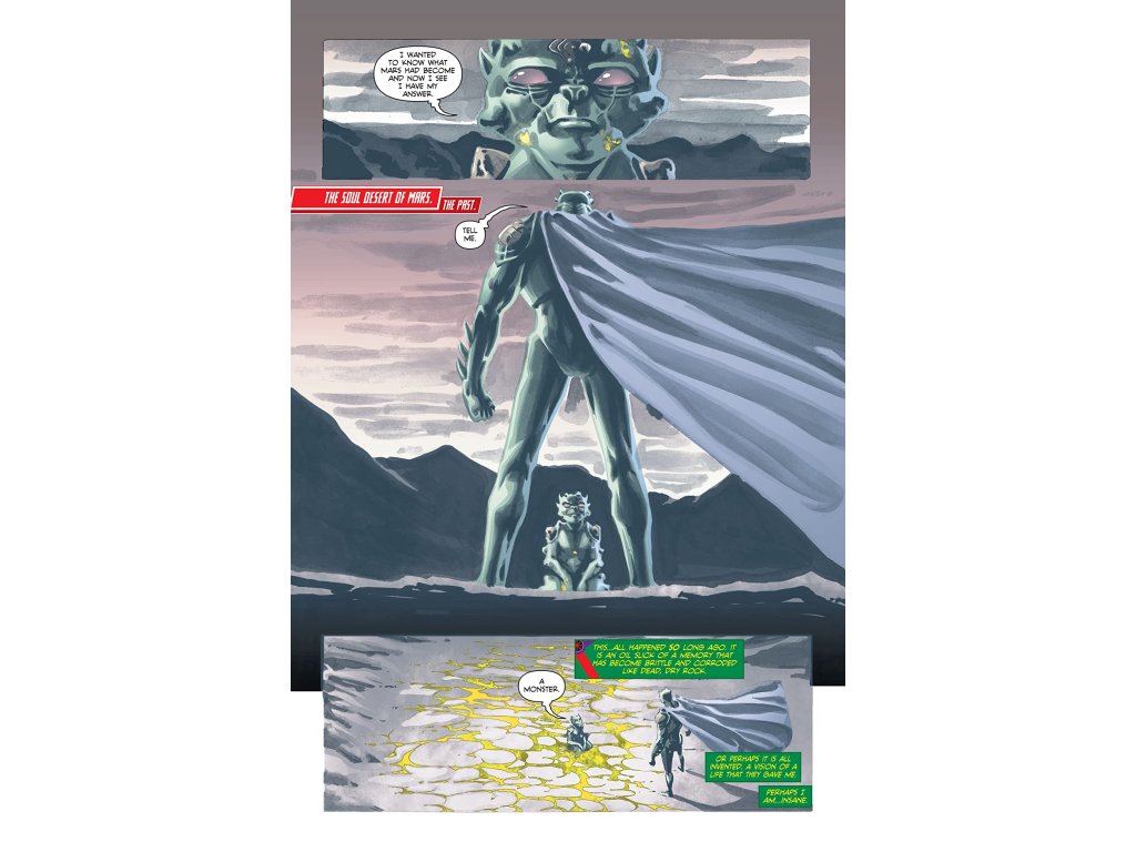 The Red Rising is complete: Mars is reborn, Earth is dead, and the Martian Manhunter walks again. But what will befall his once disparate aspects—Mould, Agent Wessel, The Pearl and Mr. Biscuits—when they are discovered alive on the new red planet? Hailed as one of the best and most unpredictable new DC series in years, MARTIAN MANHUNTER begins a major new story with this crucial issue.
