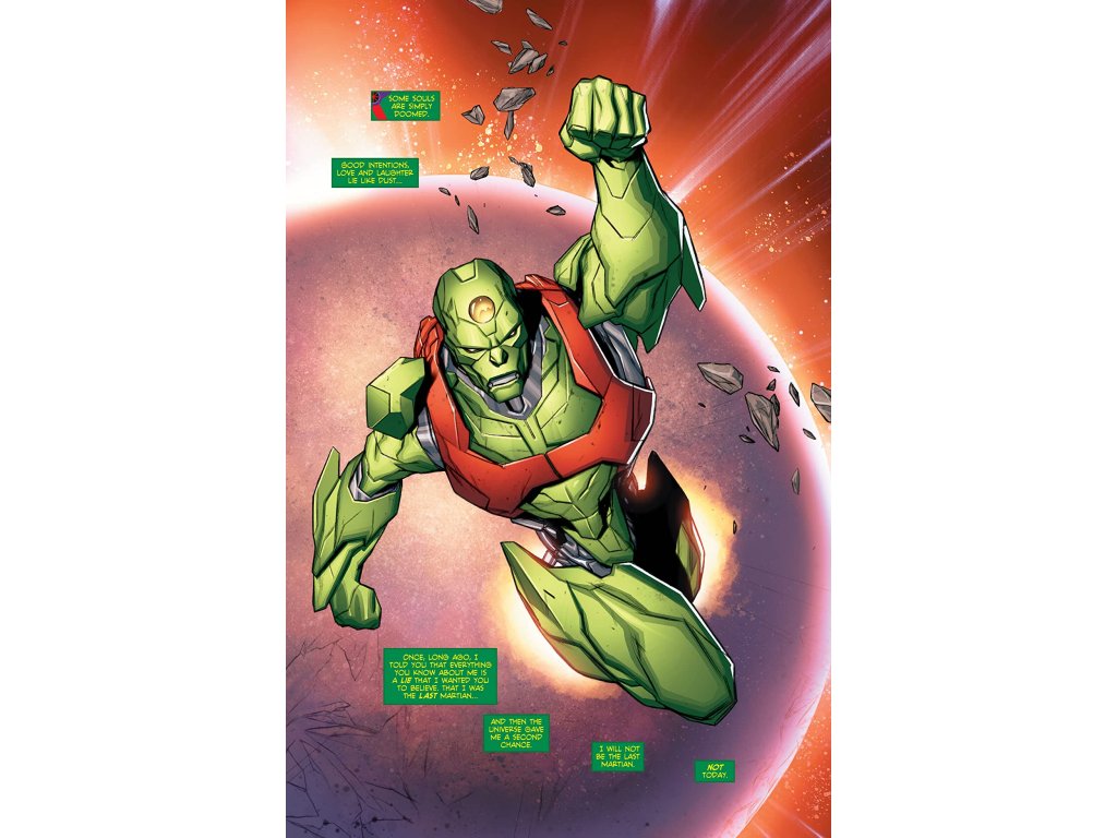 With the Living Mars and Earth only minutes away from an apocalyptic collision, the epic story of J’onn J’onzz takes a shocking turn that will change the course of the Manhunter’s life forever.