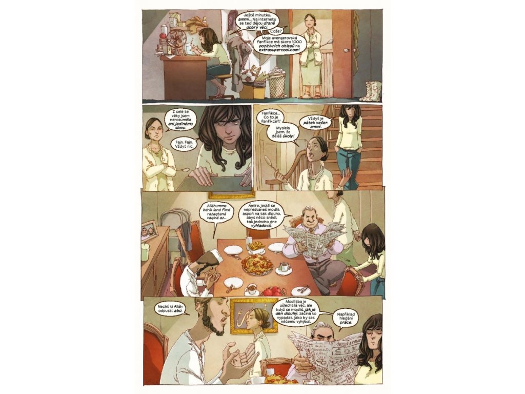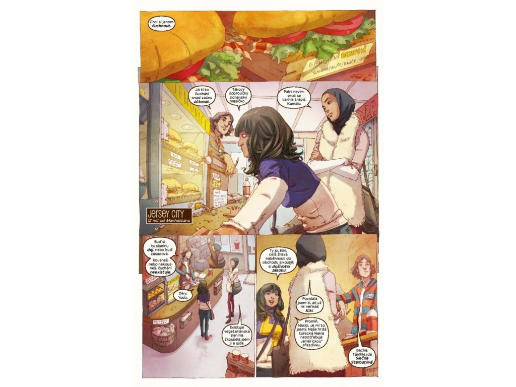 Spolužačka, ségra, superhrdinka. Ms. Marvel je příběhem teenagerky, která si hledá svou cestu. A jen tak mimochodem získá nadlidské schopnosti, které změní celý její život. Představte si, že se ze dne na den octnete ve světě Marvelu po boku Spider-Mana, Iron Mana a dalších oblíbených hrdinů. Jak s novou mocí naložíte, jak si získáte respekt osobností, které zbožňujete? Šestnáctileté Kamale Khanové se přesně tohle přihodí, ale zároveň nezmizí starosti, jaké řeší každý puberťák. Musí zvládat školní povinnosti i zamotané vztahy a chce žít svůj život jinak, než by si přáli její rodiče. Sice má superschopnosti, ale furt může dostat zaracha. Ms. Marvel se právem stala celosvětovým fenoménem a právoplatnou součástí vesmíru Marvel. A v neposlední řadě vzorem náctiletých po celém světě.