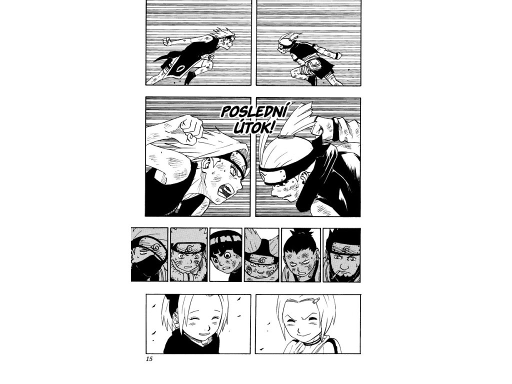 Vyřazovací souboje pokračují. Technika stíhá techniku, soubojová aréna se pokrývá prachem smíseným s potem a krví. Ke slovu se konečně dostává i samotný Naruto a čeká nás také souboj Hinaty proti Nedžimu. Má tato křehká obdivovatelka Naruta proti vrozenému talentu svého nelítostného bratrance vůbec nějakou šanci?