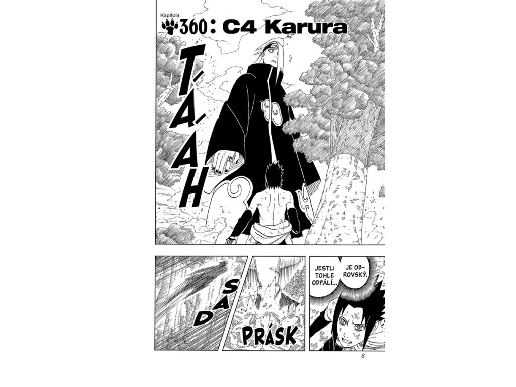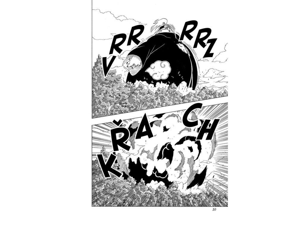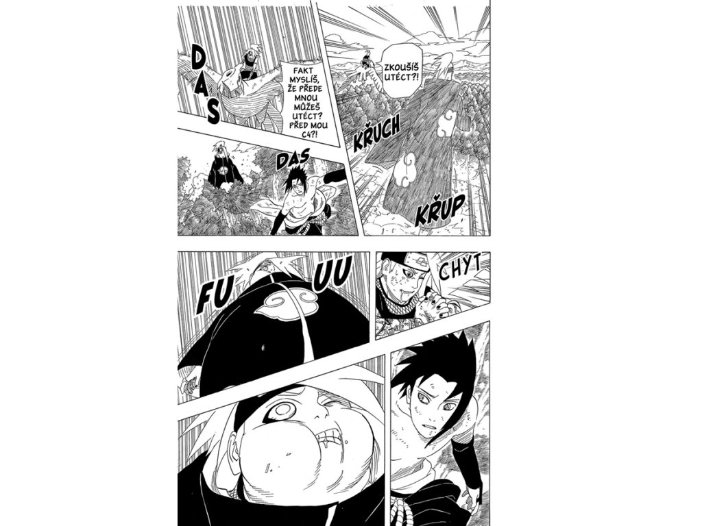 Souboj Deidary se Sasukem vrcholí a nejvýbušnější z Akacuki se pomalu ale jistě dostává do úzkých. Odhodlán neskončit opět v zajetí šaringanu, rozhoduje se Deidara použít nejsilnější ze svých technik, která zničí vše v okruhu několika kilometrů. Daleko od probíhajícího střetu se k akci rozhoupává vůdce Akacuki a s konečnou platností vydává rozkaz ulovit hostitele devítiocasého.