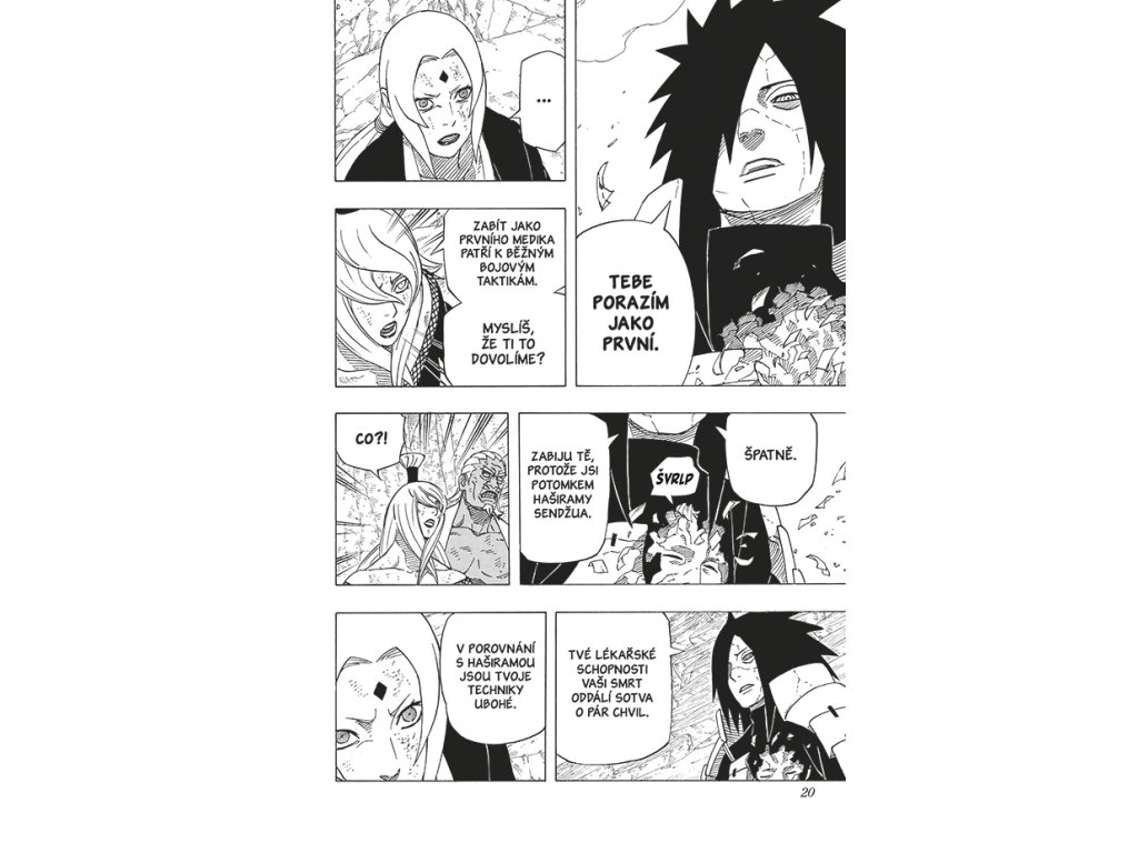 Zatímco Madara Učiha s přehledem odráží výpady vůdců nindžovských vesnic a vysmívá se domnělé slabosti Cunade, Sasuke naráží na reinkarnaci svého bratra. Snaží se ho zadržet, ale Itači má v hlavě jasný cíl – Kabuta. Sasukemu dochází, že se je Kabuto opět snaží poštvat proti sobě a staví se na Itačiho stranu. Po dlouhé době tak bratři stojí bok po boku v boji, který může zvrátit průběh celé války!