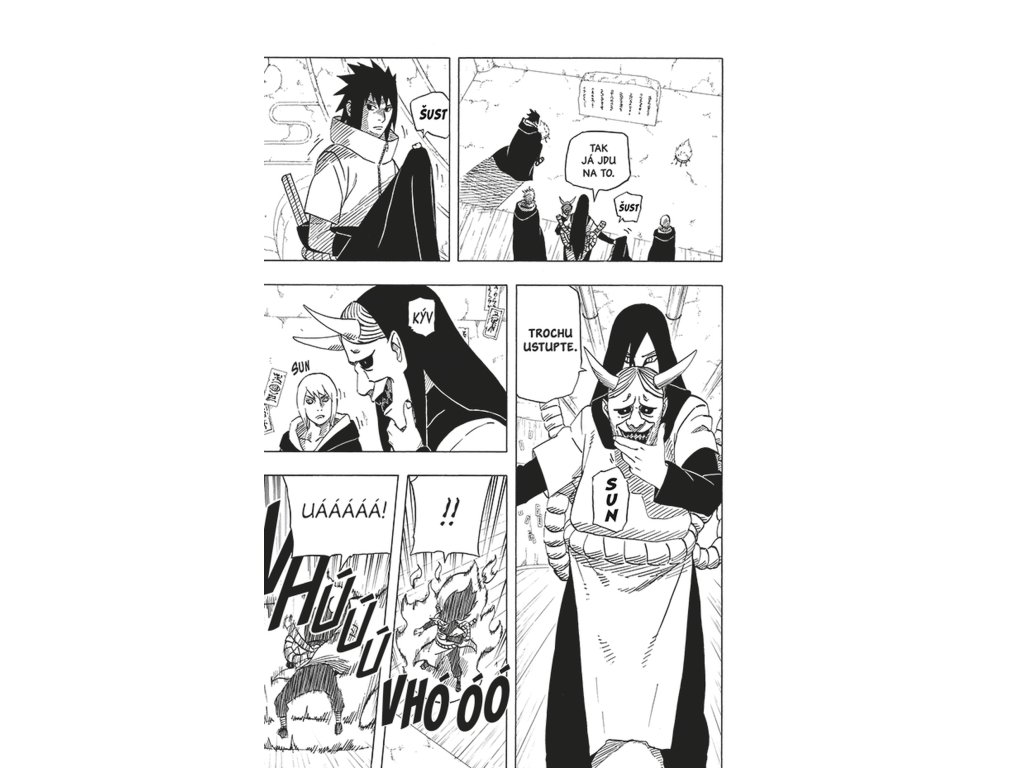 Boj spojenců proti Obitovi s Madarou se dál vyostřuje a Sasuke nechává Oročimarua povolat pomocí nečisté reinkarnace čtyři předchozí Hokage. Aby se konečně dozvěděl pravdu o svém klanu, rozhodne se vyslechnout příběh zakladatele Konohy. Co ale udělá, jakmile vše zjistí?