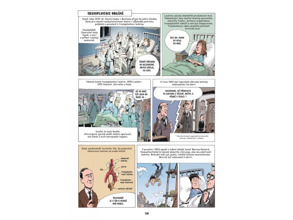 Věděli jste, že první lékaři byli původně lazebníci? A že by svět nepoznal penicilin, kdyby si Pasteur v laborce uklízel? Historie medicíny je plná neuvěřitelných příběhů, géniů, kouzelníků, ale i zatraceně šťastných náhod. Profesor Jean-Noël Fabiani cestuje s lehkostí v čase i mezi kontinenty a představuje ty nejzásadnější posuny v dějinách lékařství. V dobře sehrané dvojici s ilustrátorem Philippem Berkovicim propůjčuje i zdánlivě suchým historickým faktům lehkost a hravost, kterou komiks ze své podstaty představuje. Netradiční zážitek, který kniha čtenáři přináší, tak posouvá hranice populárně-naučné literatury a bude bavit profesionály, studenty i laiky.