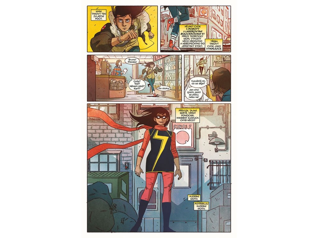 Seznamte se s Kamalou Khanovou. Mladá muslimská dívka z Jersey City nemá zrovna na růžích ustláno, ale když jí terrigenová pára obdaří neuvěřitelně tvárnými schopnostmi, začne být její život skutečně šílený. Navzdory nastalému chaosu Kamala přesně ví, co si se svým novým nadáním počít, a nic jí nezabrání stát se nebojácnou hláškující hrdinkou, protože odjakživa ví, že na to má. Nezastaví ji rodiče, Nelidé ani superdivný padouch s ptačím mozkem známý jako Vynálezce.