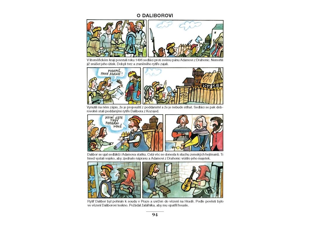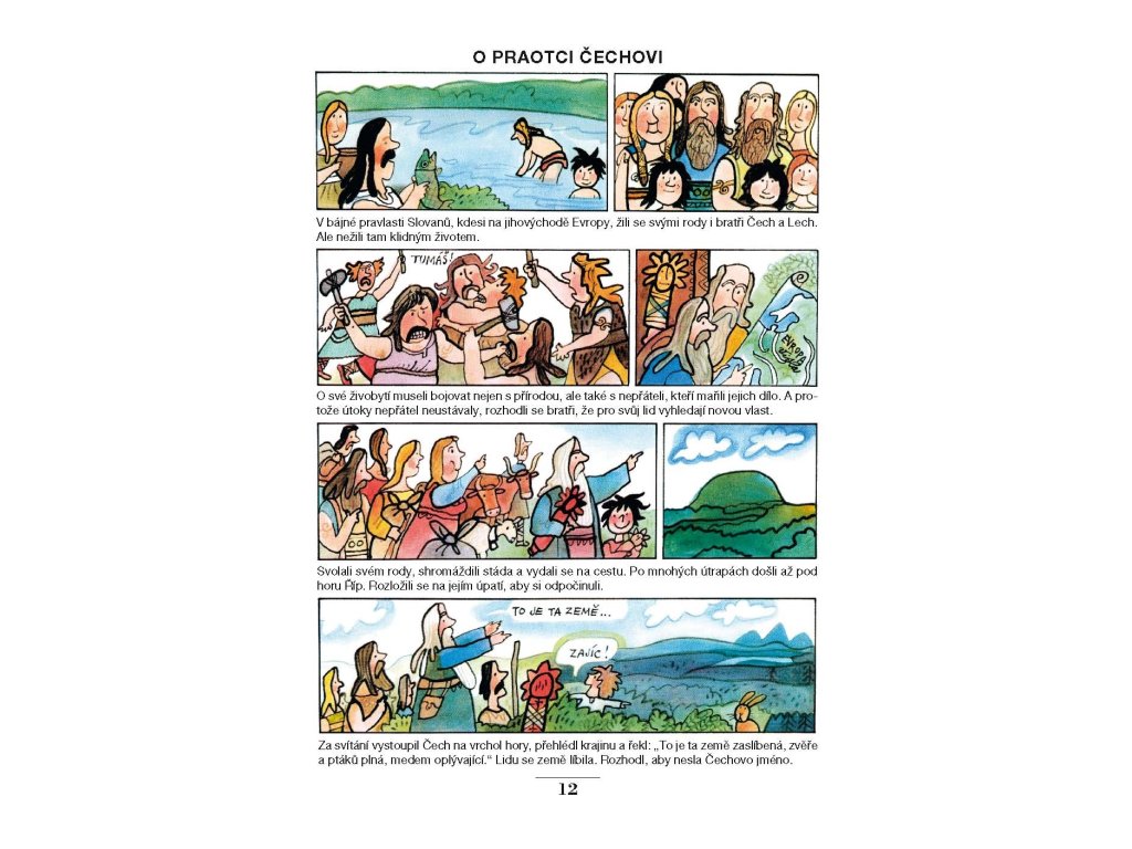 Oblíbená knížka obrázkových seriálů, která hravou, humornou, ale výstižnou formou přibližuje čtenářům nejstarší i novější dějiny naší vlasti. Autoři vyprávějí o příchodu praotce Čecha, o Bivojovi, o Libušině proroctví, o Karlu IV., o Janu Husovi, o golemovi, avšak i o slavných spisovatelích, hudebních skladatelích, vědcích a vynálezcích. Knížka končí vznikem Československé republiky v roce 1918.
