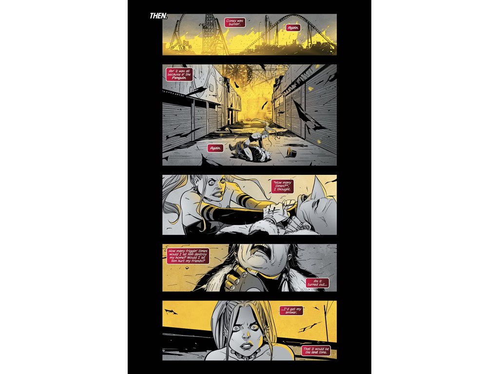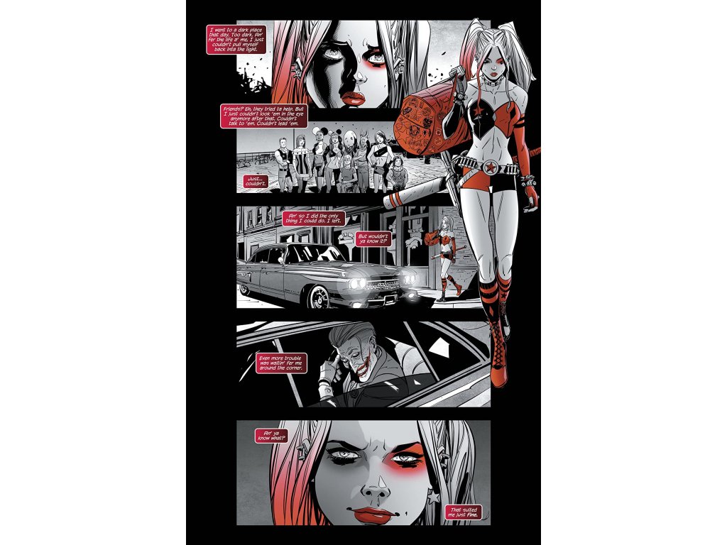 After liberating New York City from her now-feral Gang of Harleys, poor Harley wants nothing more than to slip back into retirement in her coastal (and heavily guarded) paradise. But the Laughing Boys Gang has another idea—they’ll follow her to the ends of the Earth, to drag her back to their leader! It can’t actually be...him! Right?! He couldn’t possibly still be alive, could he? After all...Harley killed him herself with her bare hands! Should she turn to President Power Girl for help? Or flee to the 51st state, Atlantis? Step into an insane vision of a future DC Universe we all better hope we don’t live to see!
