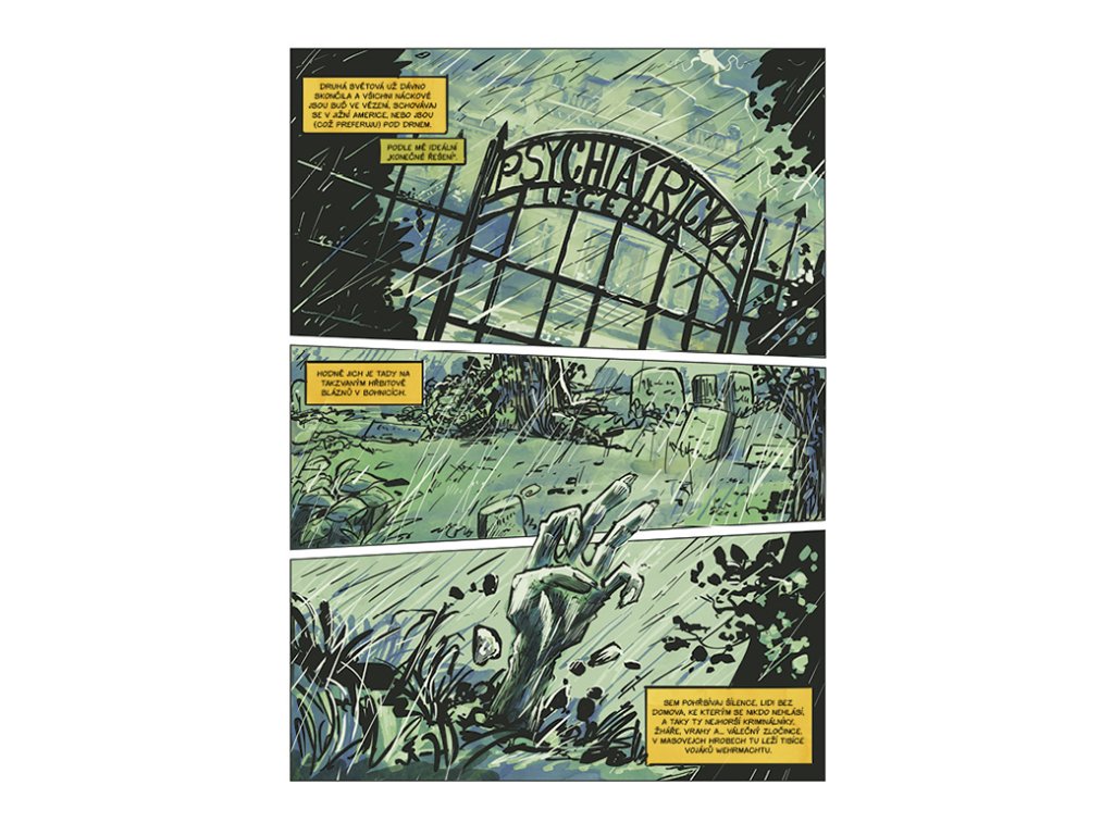 Jenže když se po vás sápe hnilobou páchnoucí pařát gestapácké zombie, není na vnitřní existenciální rozpory čas, a náš hrdina se ocitá zpátky v (dinosauřím!) sedle, i se svými pružinami na nohou. Na Péráka čeká nejosobnější nepřítel, jakému kdy čelil, a konečné řešení všech jeho problémů.