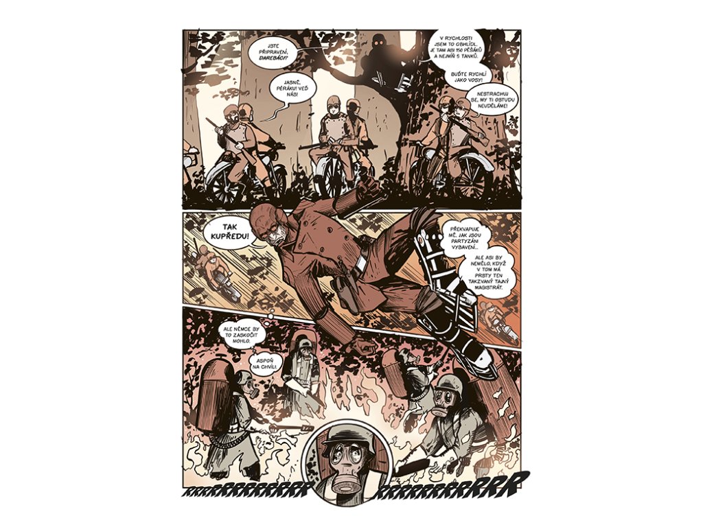 Pérák se při stíhání Vernera musí dostat přes řadu překážek – třeba přes armádu wehrmachtu slídící v šumavských hvozdech po skrýši partyzánů nebo doktorem Mengele „vyšlechtěného“ slovenského supervojáka Fosforáka. Ve velkolepém finále se pak splétají linky minulosti, přítomnosti i příběhů načatých v předcházejícím grafickém románu Pérák: Oko budoucnosti. Najde Pérák vytoužený klid?