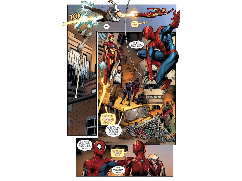 An oversized anniversary epic, told the only way your pre-eminent pals in the Spidey-Office know how -- in the Mighty Marvel Manner! For weeks, the Tinkerer has been launching a campaign against his do-gooder brother, the Mason, and Spidey's nearly met his maker more than once trying to stop their sibling rivalry! With a little help from a tech-heavy team of Marvel heroes, Spider-Man takes the fight directly to Tinkerer! But Tinkerer's got tech of his own...and it's out of this world!