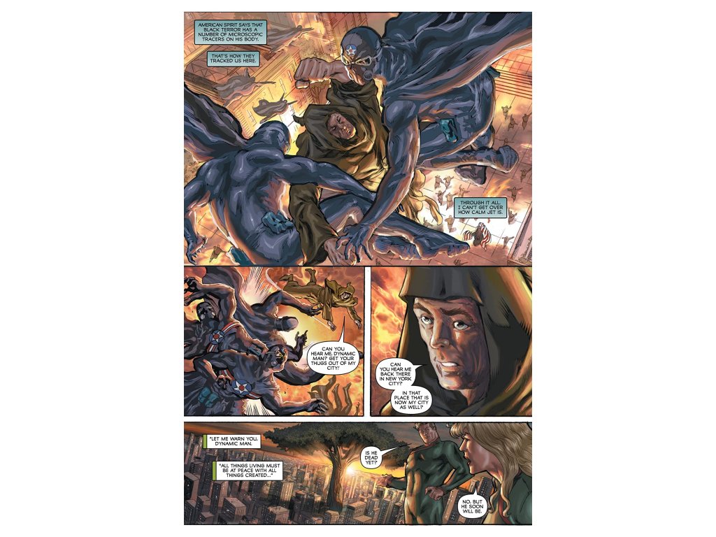 The Saga continues as we focus this issue on the mysterious Samson and the beautiful Masquerade! Also, more with the Fighting Yank, Black Terror and Green Lama as they continue to fight against the DYNAMIC FORCES of the Dynamic Family and their machines and engines of war! Plus, the emergence of The Face from the urn, more with The 'Devil, The Flame and more!