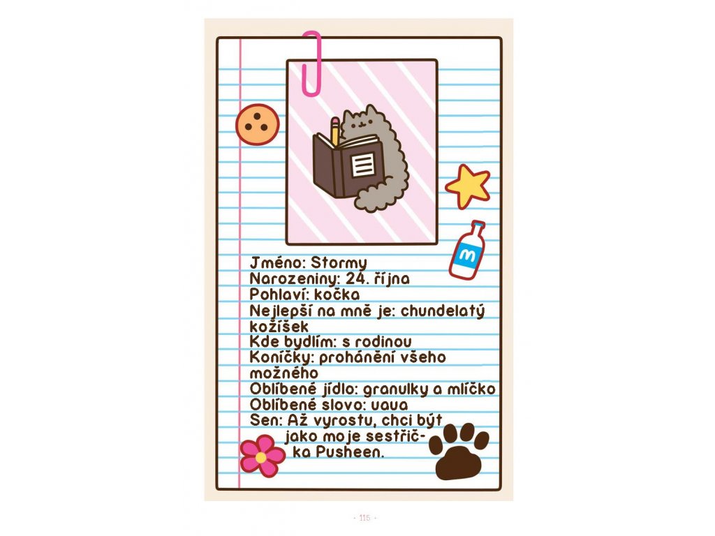 Pusheen zahřála u srdce a rozesmála už miliony lidí po celém světě svými praštěnými gifovými obrázky, na nichž se natřásá a kroutí ocasem. Teď je připravená vystoupit z elektronických vod na papír! V téhle knize najdete ty nejpopulárnější facebookové obrázky a k tomu spoustu dosud neviděného materiálu. Zjistěte, co ji přiměje vrnět a proč už se do ní zamilovalo tolik lidí… Pokud už mezi ně samozřejmě nepatříte – pak je pro vás tato knížka naprostou povinností!