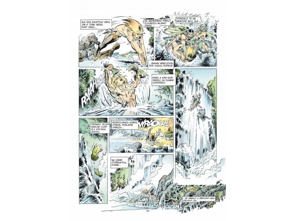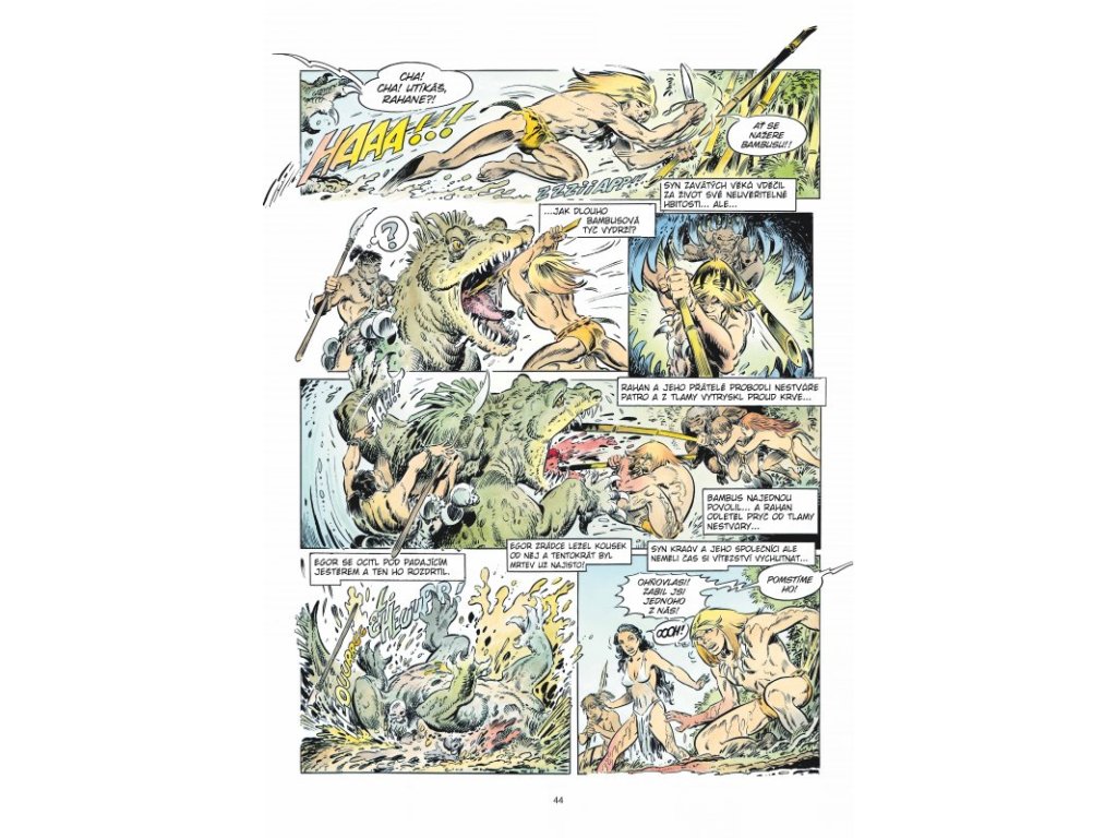 Rahan zanechal hledání Slunečního doupěte a vydává se k tajuplné Rozpolcené hoře, kde naposledy viděl svou milovanou Naúnu. Pod horou však vládne kmen Krokodýlích lidí, který se nechce vzdát svého území. Rahan znovu musí bojovat s krutými nepřáteli, aby obhájil svou čest i čest svých přátel. Zároveň se dovídá, že jeho dva synové záhadně zmizeli…Na závěr příběhu je připojen stručný portrét Rogera Lecureuxe, duchovního otce Rahana, syna zavátých věků, a jednoho z nejslavnějších komiksových scénáristů.