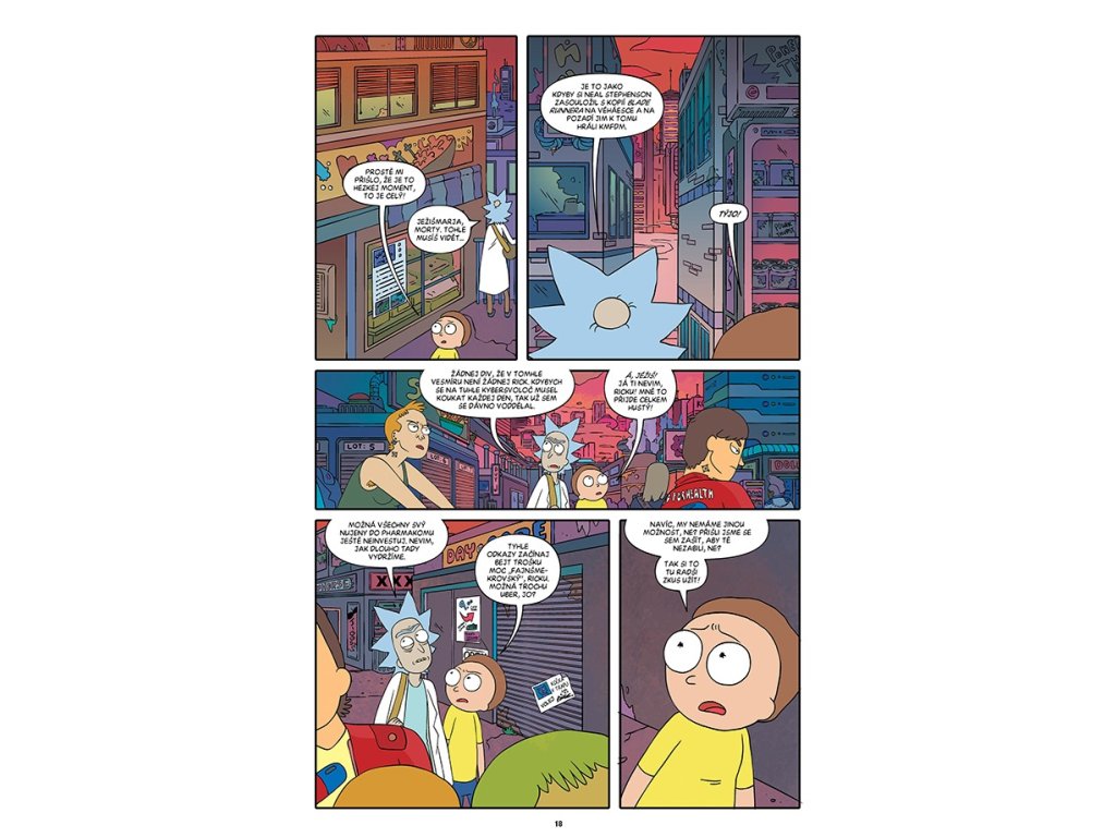 Sledujte degenerovaného génia Ricka Sancheze a jeho koktajícího vnuka Mortyho při dobrodružstvích na samotné hraně času, prostoru a prachsprostých základů slušnosti. Tato sbírka obsahuje čísla 6–10 komiksové série včetně Drtikulského speciálu od hostujícího výtvarníka Andrewa MacLeana, Bláboční nadělení, které nakreslil scenárista série Zac Gorman, a kyberpunkový příběh z druhého konce vesmíru.