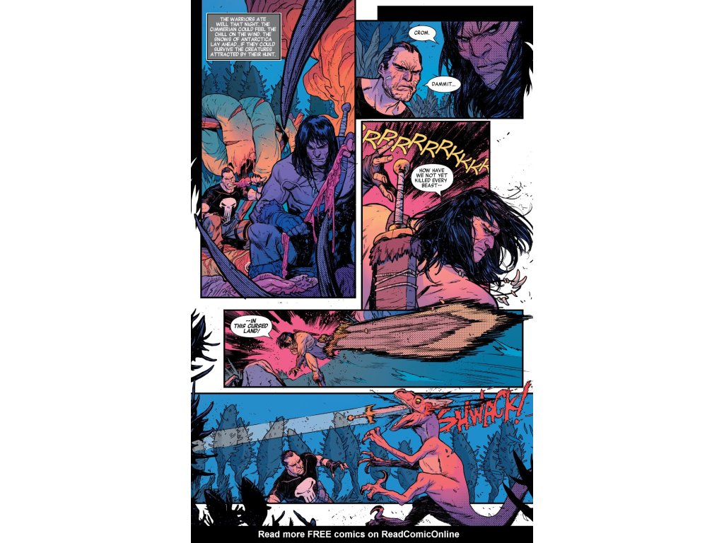 Conan & The Punisher attempt to walk out of the Savage Land hauling the caskets of Frank’s family...through Antarctica. Frank Castle never was much of a religious man...but now he’s firmly “Crom-curious.”...