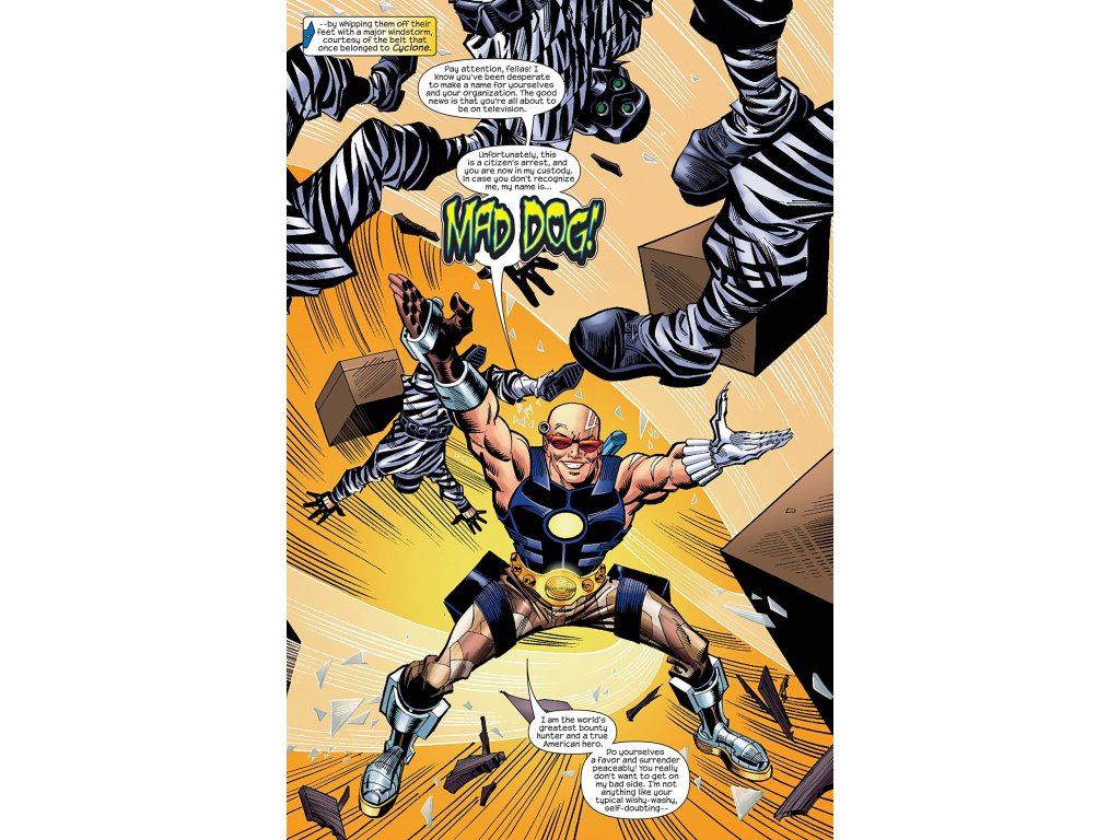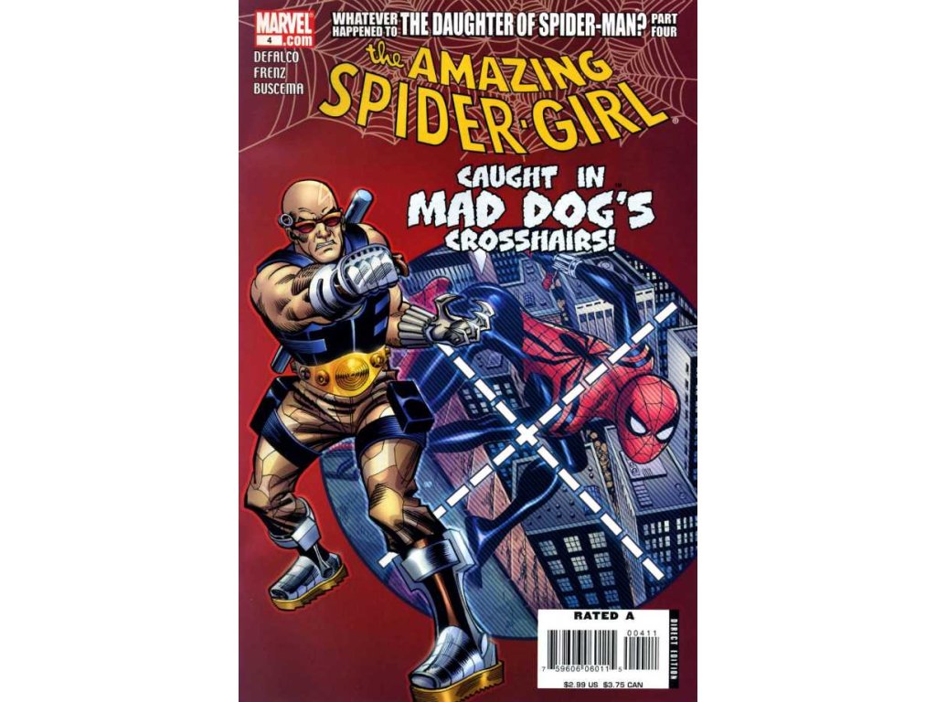 As Spider-Girl continues her hunt for Hobgoblin and the lethal legacy of Wilson Fisk, the former Kingpin of Crime, a vicious new player enters the fray: Mad Dog--the bounty hunter who employs the weapons of the former super-villains he's captured.