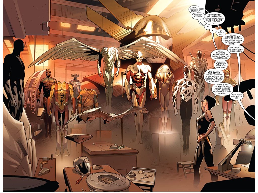 Miles' world has been shaken a lot lately, but nothing will compare to what the mysterious Iron-Spider and his brand new SINISTER SIX will do. Sandman, Hobgoblin, The Spot, Electro and Bombshell (?!) join this mystery villain to make Miles' life a living hell.