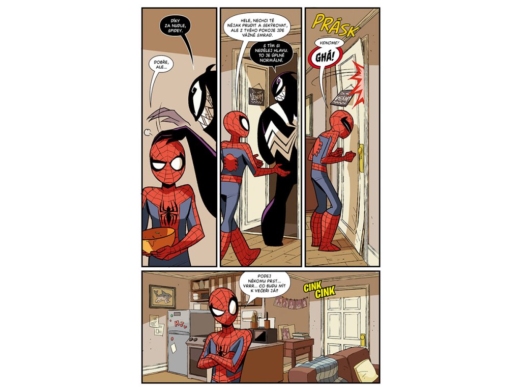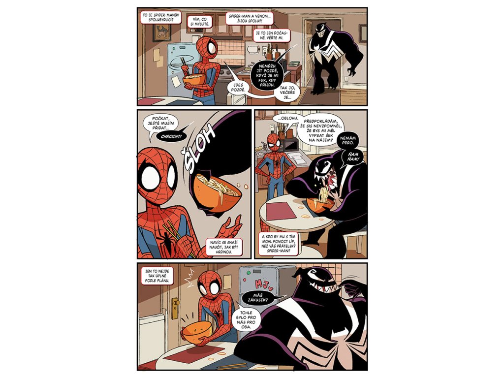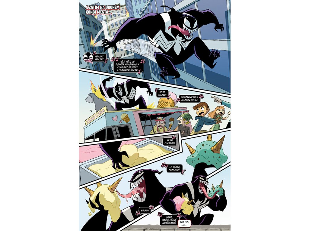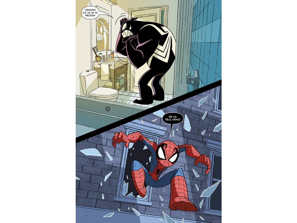 Je to vážně zábava toho nejulítlejšího druhu. Spidey a Venom si navzájem vymění těla. Ale kdo za tímhle šíleným experimentem stojí… a o co mu jde? To se brzy dozvíte sami – v tomhle zbrusu novém příběhu, který je parádně nakreslený ve stylu animovaných grotesek!