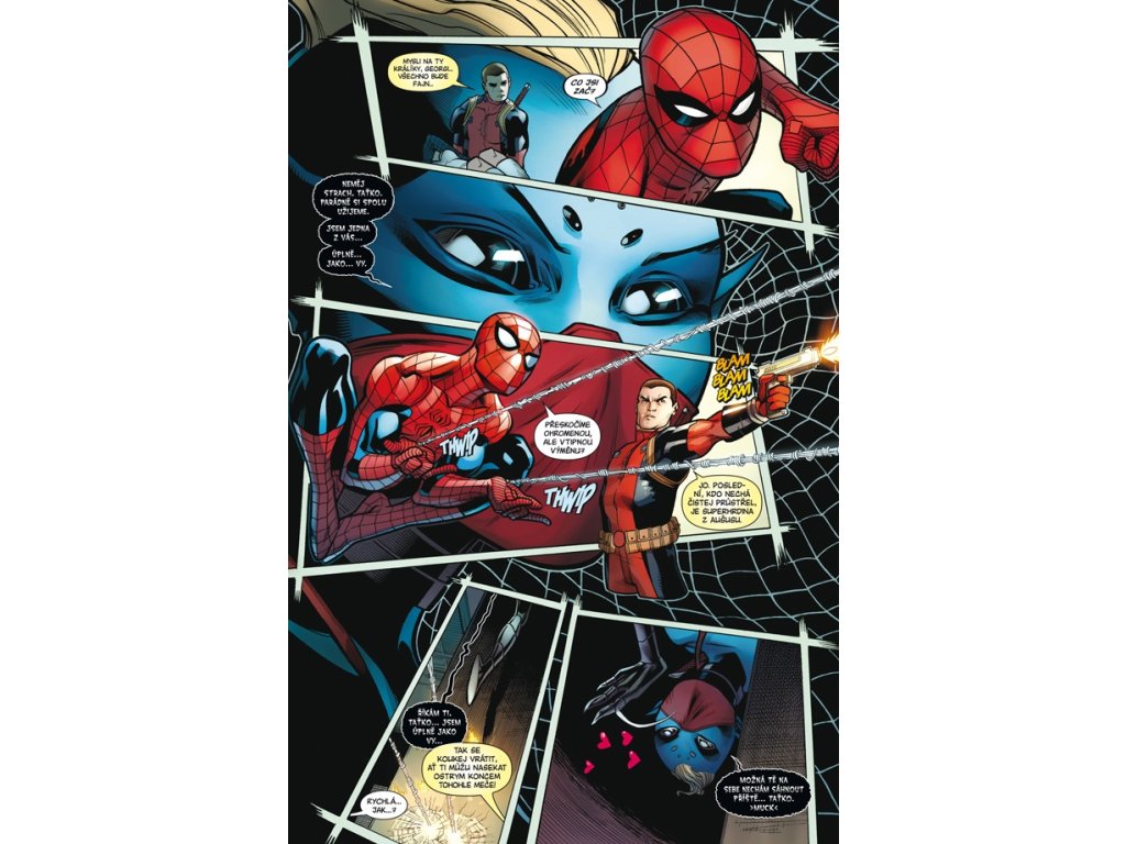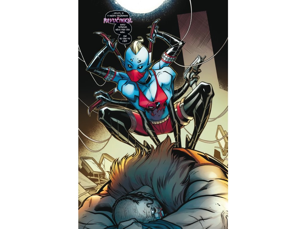 Nejhorší noční můra PETRA PARKERA a WADEA WILSONA: vraždící dáma namíchaná z nich dvou zvaná Pavučinka! "Dcera" našich hrdinů je silnější než oni, rychlejší než oni a má solidně ujetou fixaci na tatínky - ale jaká poblázněná mysl ji mohla vůbec počít? Zatímco počet mrtvol stoupá, snaží se Spider-man s Deadpoolem Pavučinku porazit - stejně jako toho, kdo od začátku tahá za drátky! Jak ale tuhle pavučinku pomůže vymést výlet do Čarosvěta? Zběsilá imaginace Joea Kellyho a Eda McGuinnesse přináší dosud nejnepokojivější příběh Spideyho a Deadpoola.