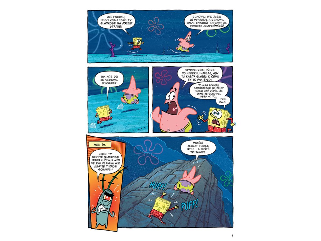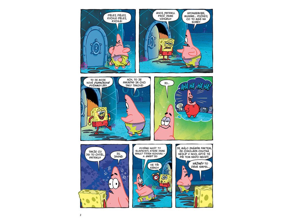 Noční výprava za pamlsky muže být pěkně napínavá! Dovedete si představit SpongeBoba v kalhotách… bez kalhot? A jaképak tajemství se dozvíme z Patrikova deníčku? Doufám, že recept na jeho neuvěřitelnou omáčku! A jestli se chcete naučit, jak NEkreslit SpongeBoba, počkejte si na další číslo!