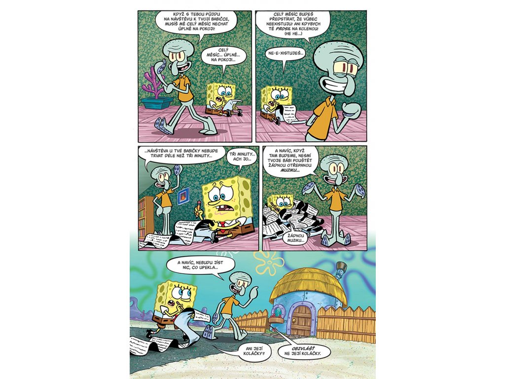 V tomto sešitě zjistíme, zda bude SpongeBob žárlit, když si Sépiák oblíbí jeho babičku. A jestli je nejlepší nápad vzít s sebou na luxusní jachtu SpongeBoba a Patrika. Vyplatí se panu Krabsovi pořádat v restauraci boxerská utkání? Ale hlavně mě zajímá – čistí si hvězdice zuby nití?