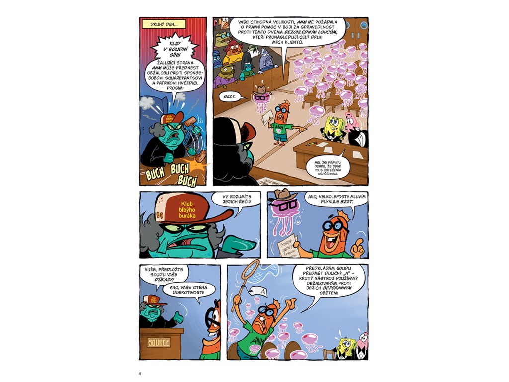 Půjde SpongeBob do vězení?! V tomto sešitě zjistíme, jak se bude SpongeBob bránit, když si medúzy najmou právníka a pošlou ho před soud. Pomůžete vymalovat Garyho ulitu a SpongeBobovi s Patrikem najít cestu z korálového bludiště. Sépiák má strach obsloužit podivnou Společnost modrých klobouků, a nakonec ještě z budoucnosti přicestuje tajemný SPONGEBOT!
